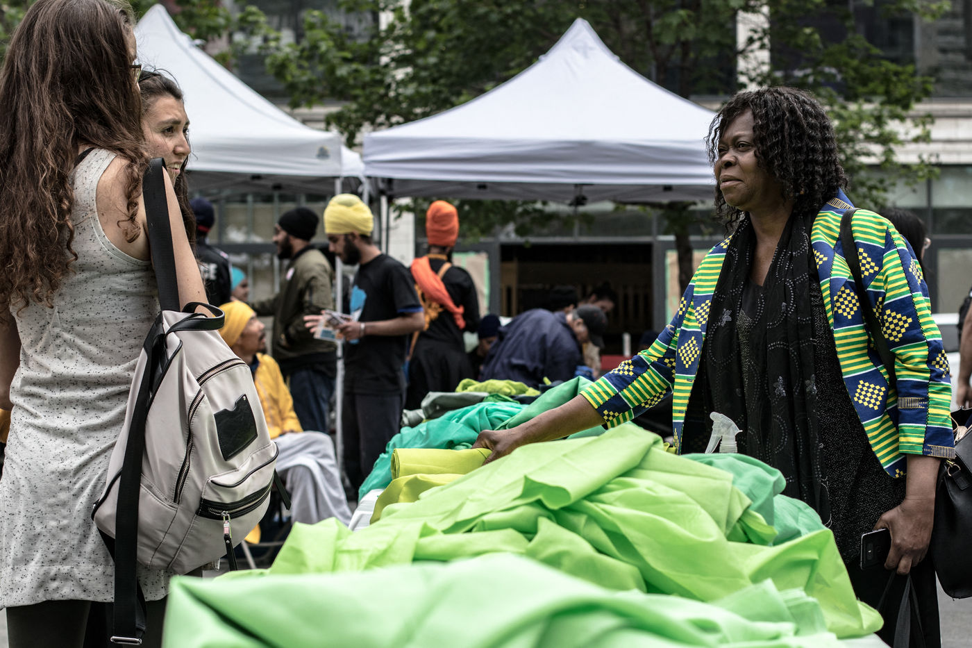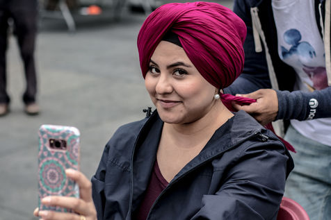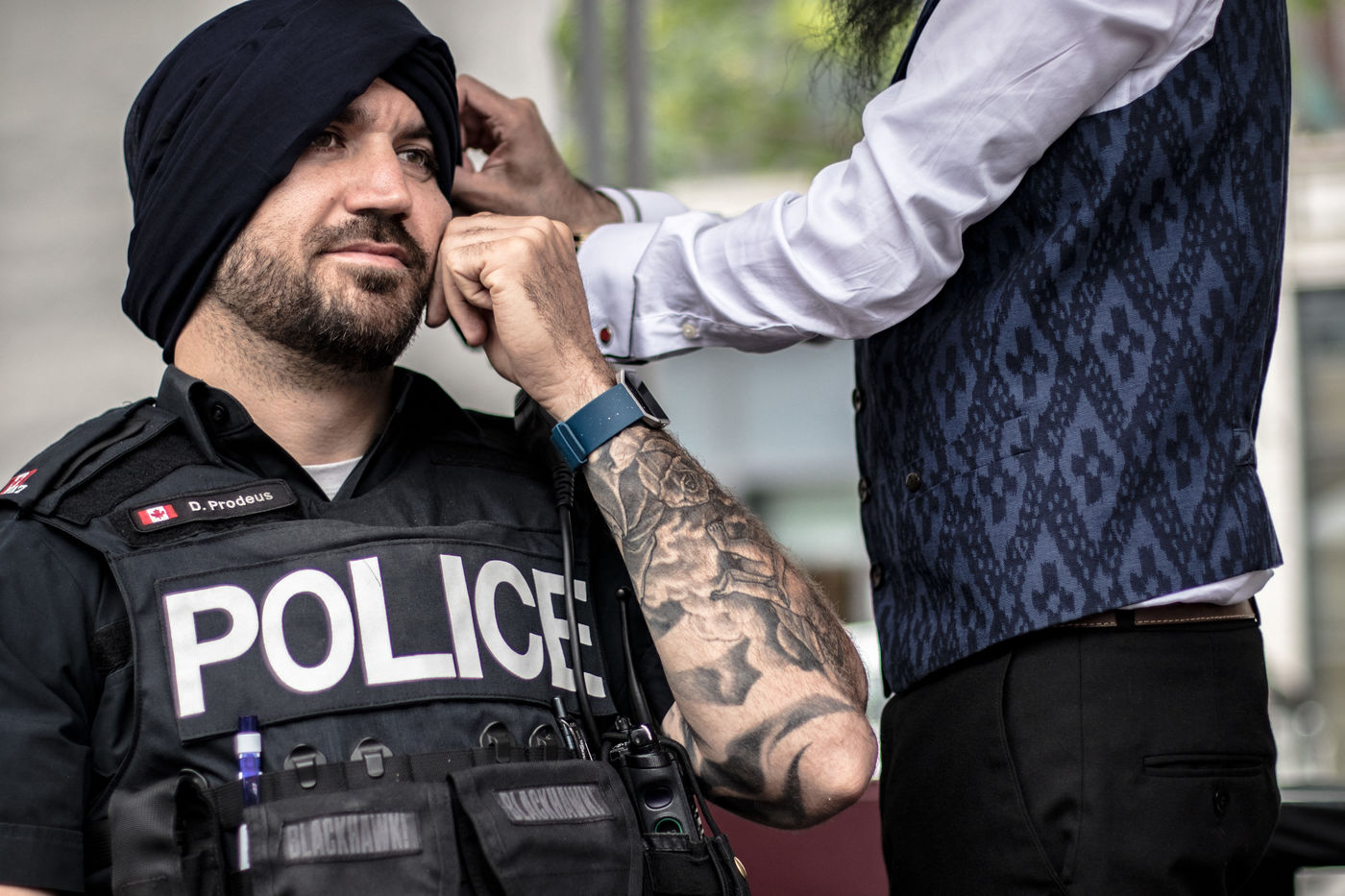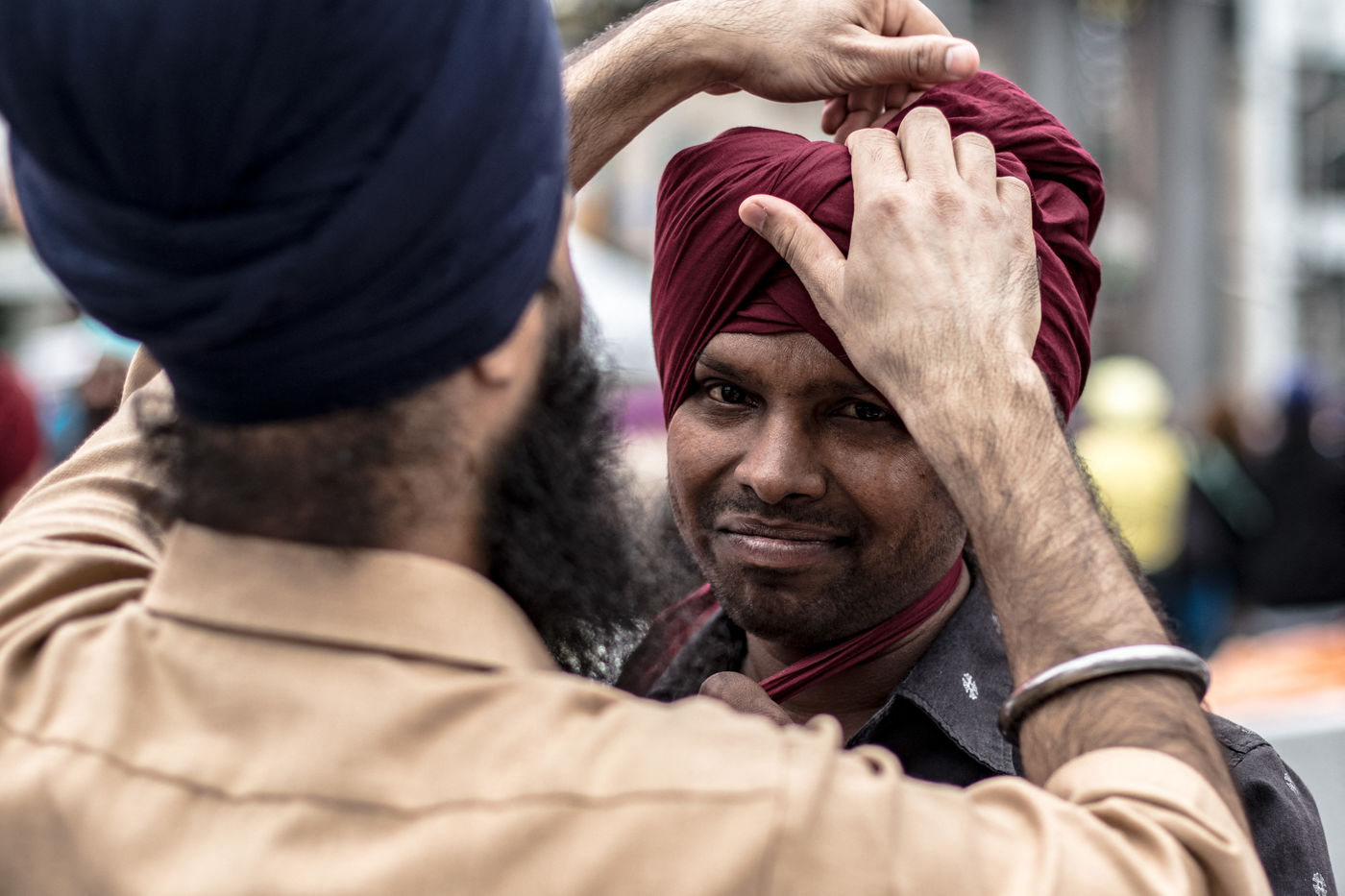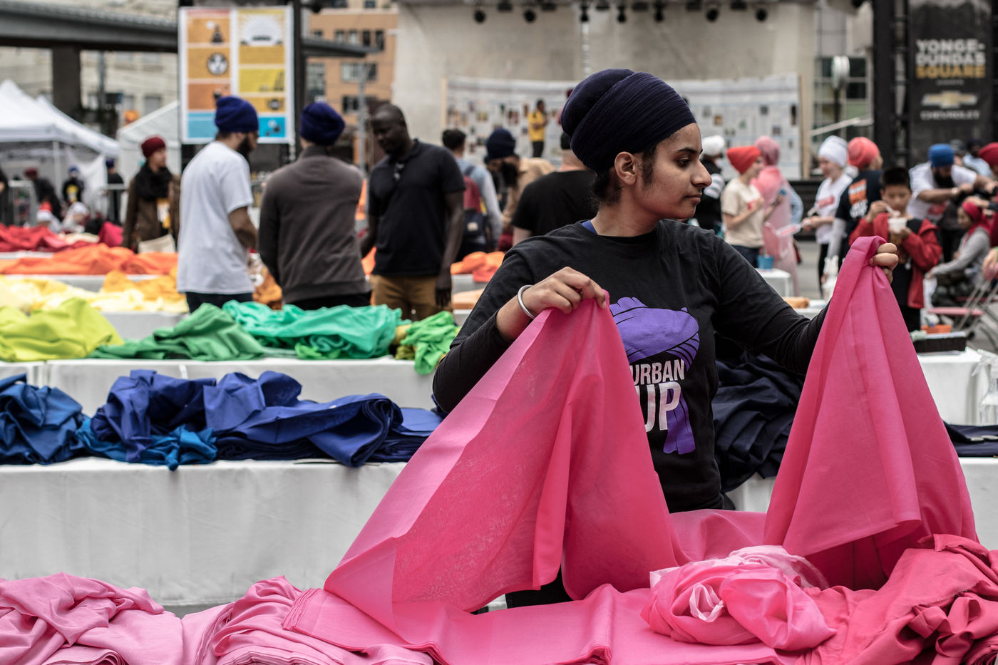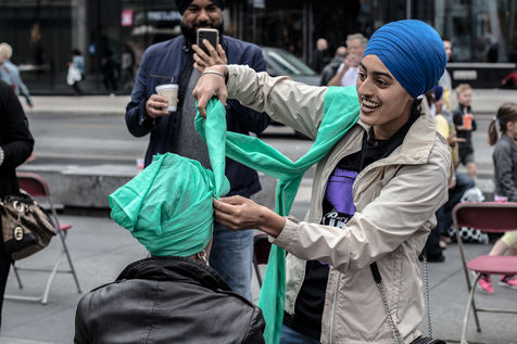 Les hommes et les femmes de la communauté confectionnent gratuitement des turbans colorés aux festivaliers de toutes origines, et les invitent durant ces quelques minutes à poser des questions sur la tradition Sikh. On peut même y voir les policiers de Toronto se prêter au jeu, et porter pour un jour le turban traditionnel, aux côtés de leurs collègues Sikh, qui eux le portent en permanence!