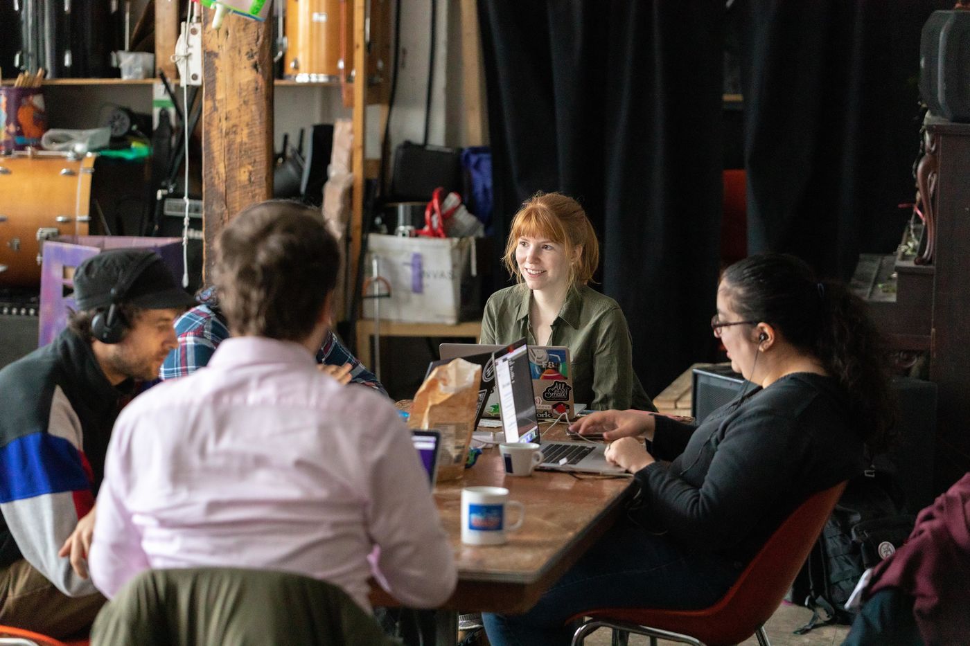 Des étudiants canadiens faisant partie de l'équipe de campagne de Bernie Sanders se rassemblent à Montréal pour appeler et texter les électeurs américains pour les convaincre de voter pour Bernie Sanders à la primaire démocrate pour l'élection présidentielle de 2020.