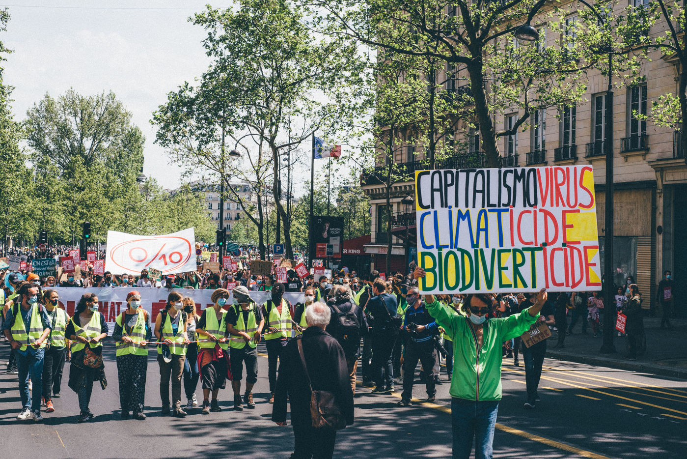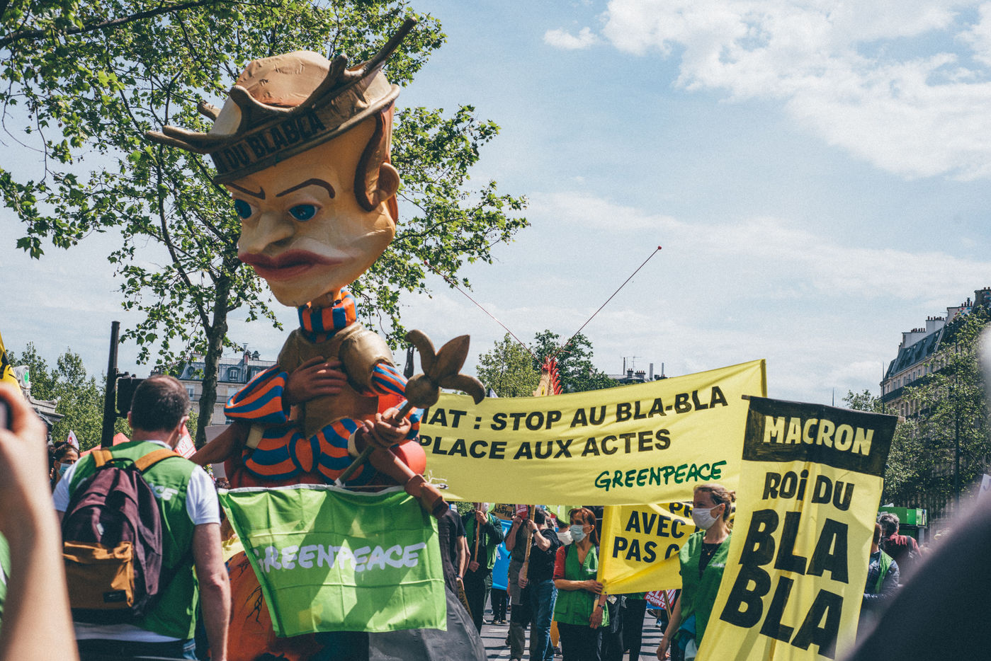 En réponse au manque d'ambition de la loi climat, les citoyens et militants écologistes manifestent dans les rues de Paris pour exiger une VRAIE loi climat à la hauteur de l'urgence climatique. En l'état, la loi votée à l'Assemblée Nationale le 4 mai dernier, ne permet même pas de remplir les accords de Paris ni la promesse "sans filtre" du président E. Macron lors de la Convention Citoyenne pour le Climat.
