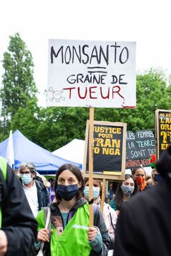 Dénonciation de l'industrie agrochimique avec la 9ème marche contre Monsanto-Bayer à Paris. Après plusieurs scandales du aux pesticides et autres produits toxiques, les citoyens demandent aujourd'hui, une agriculture plus respectueuse de notre santé et une justice environnementale.