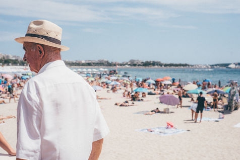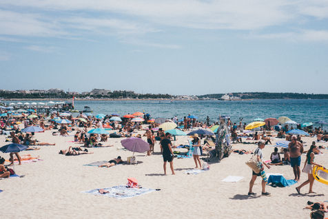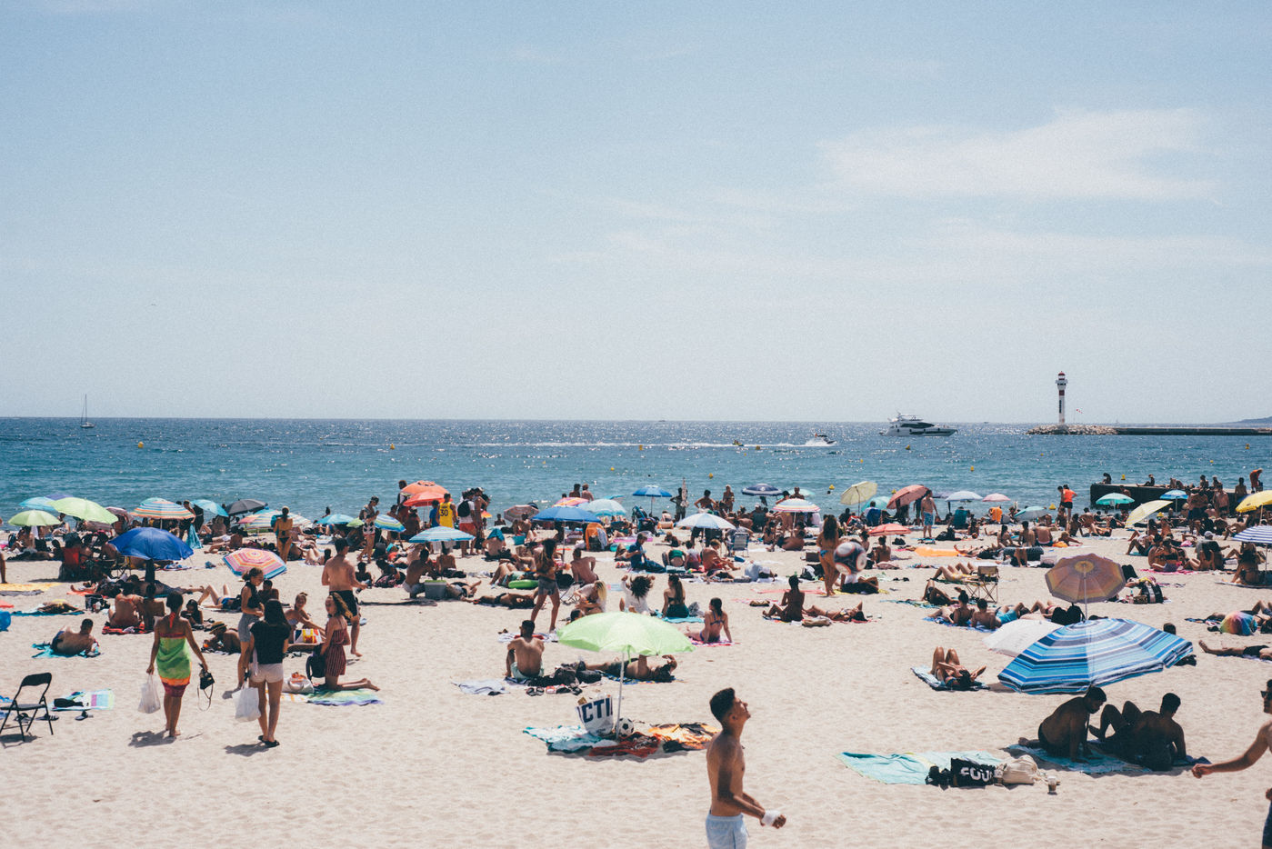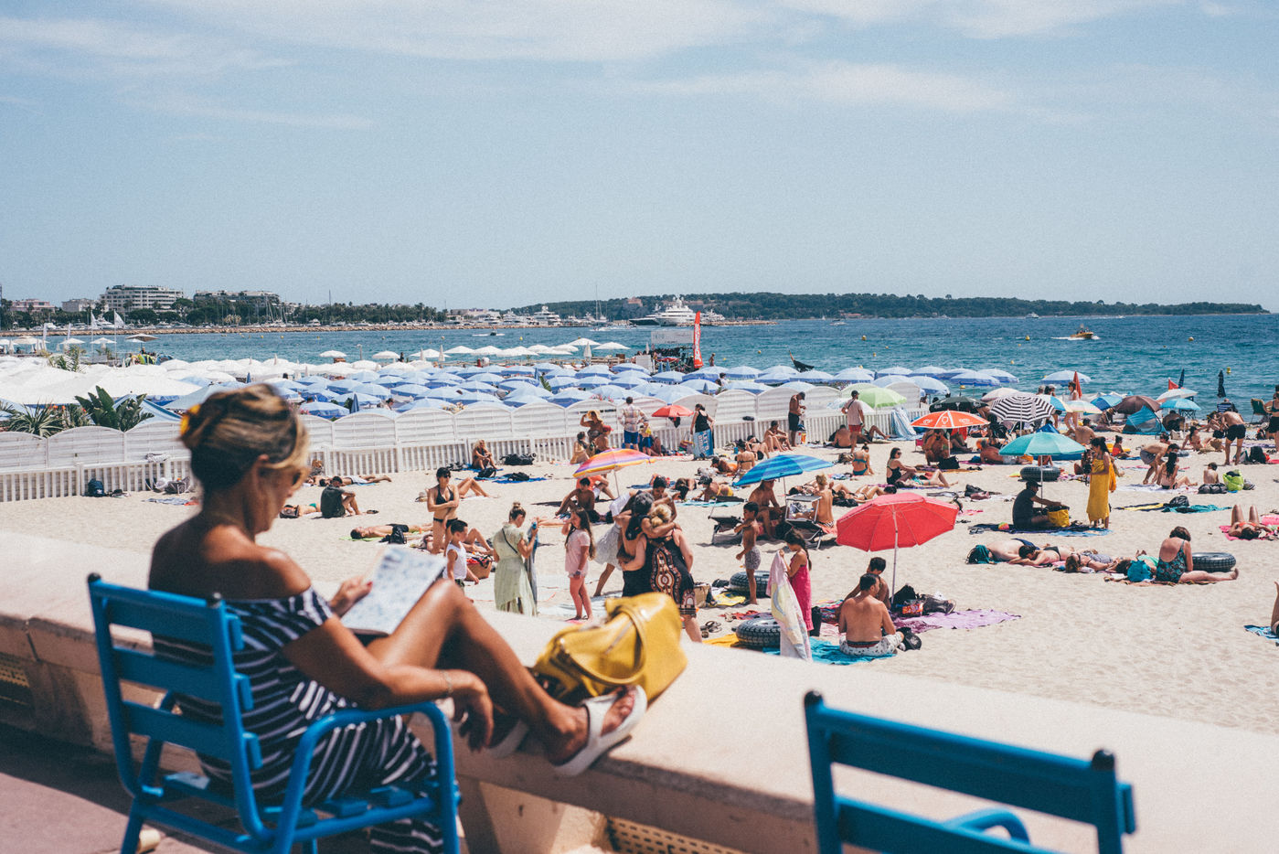 Les Français en vacances à la plage, dans le sud de la France et promenade sur la croisette.