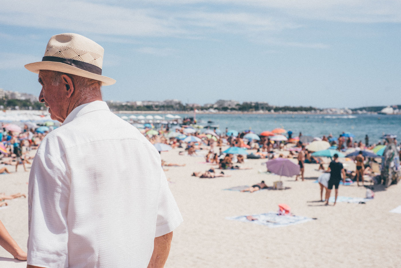 The French on holiday at the beach, in the south of France and walking on the Croisette.
