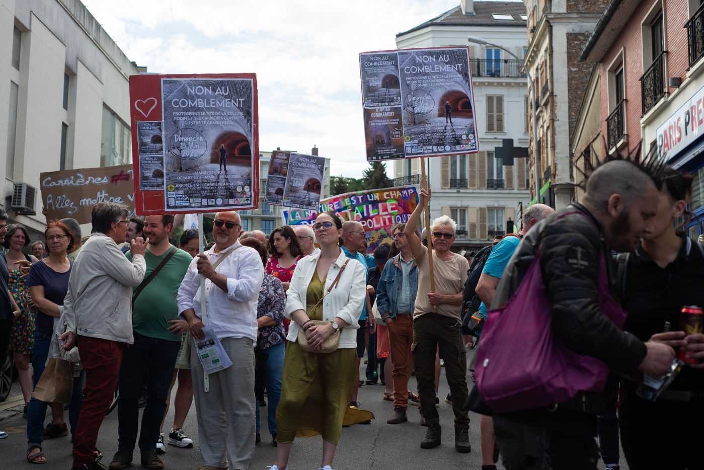France, Meudon, 2022/05/15. A l'initiative du collectif arnaudet carrieres en lutte, une manifestation a defile dans les rues de Meudon contre le comblement des carrieres Arnaudet avec les dechets du Grand Paris Express. Non au comblement.