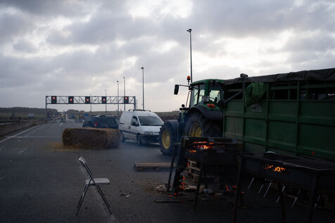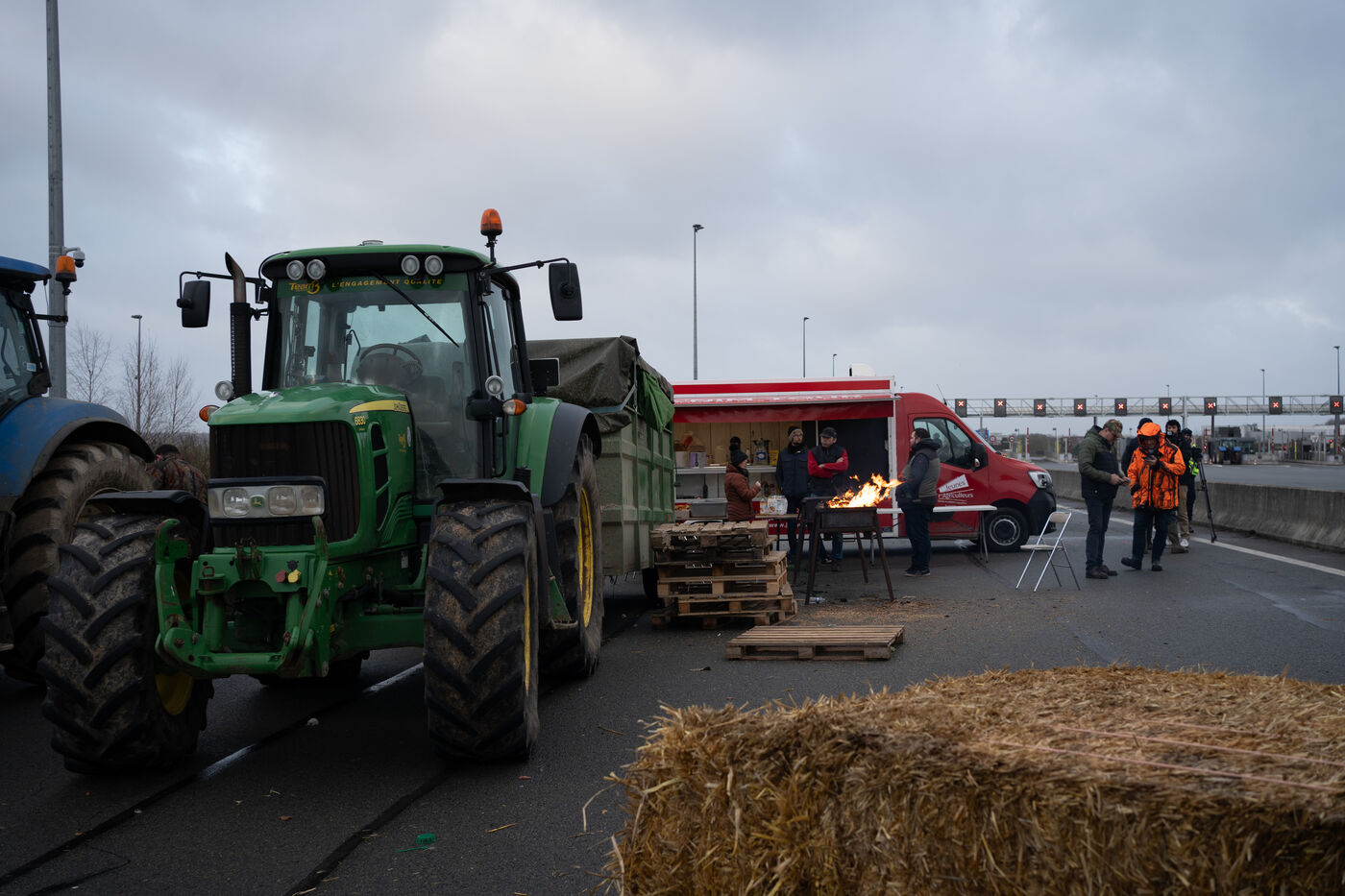 Bloquage de l'A29 proche d'Amiens par les agriculteurs et agricultrices en colere.