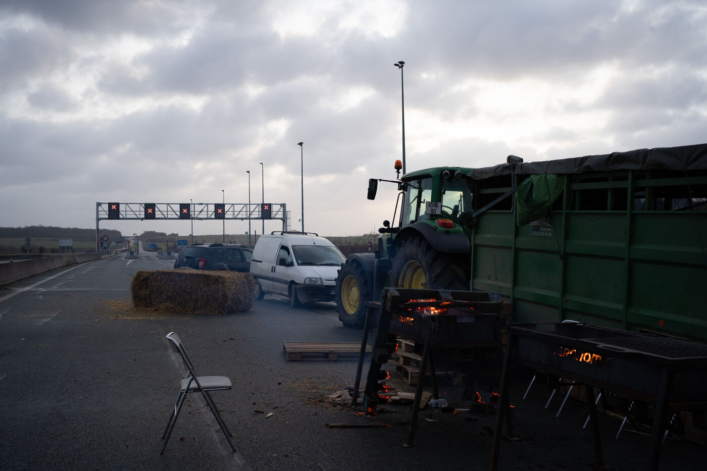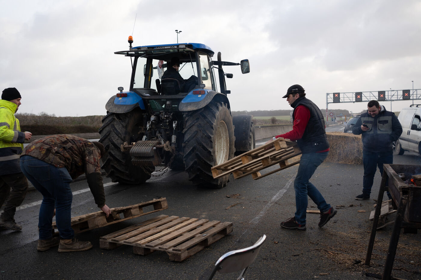 Angry farmers block the A29 near Amiens.