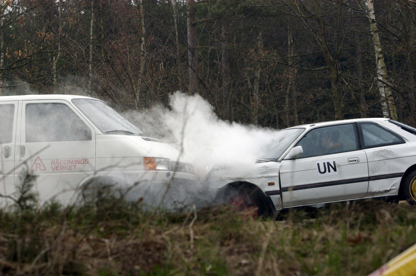 Aware that the United Nations flag can no longer protect them, the UN has put a training program into place. Organized at a military base in Northern Europe the program consists of between 25 and 35 people of different nationalities. At the program practical outweighs theory - road accidents, imitated kidnappings, check point procedure, driving amongst mines and evacuation procedure are some of the key parts of the training which disassociates itself from military training. Obviously no real shots are fired but everything is designed to generate reality: local inhabitants disguise themselves as refugees and genuine soldiers take part.