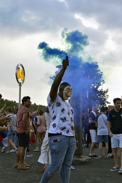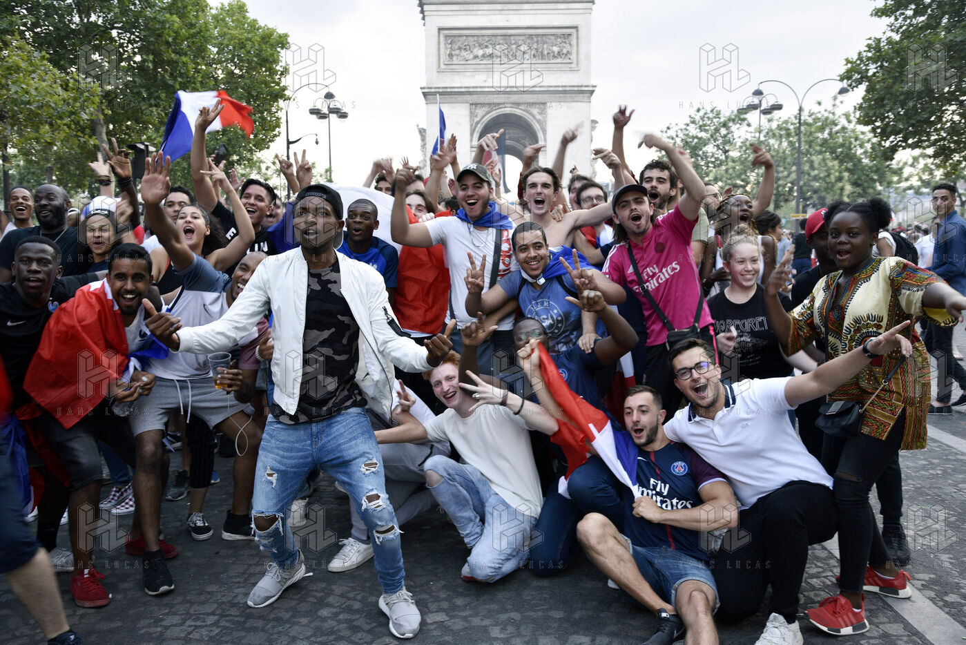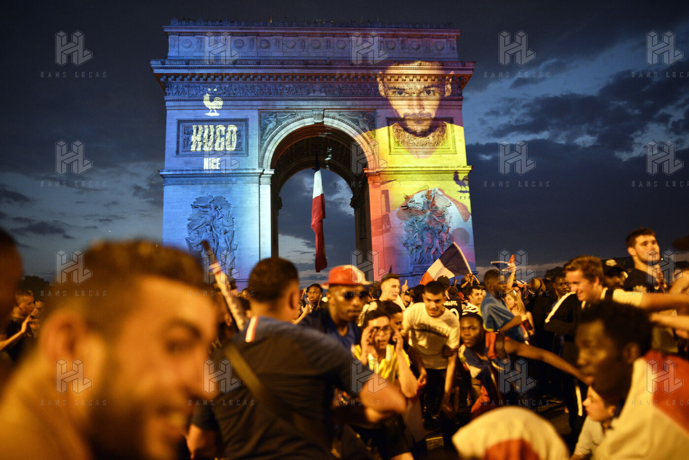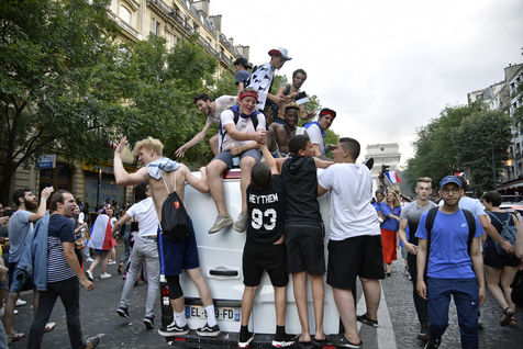 on the Champs Elysees after the victory of the French team in the Final of the World Cup Russia 2018