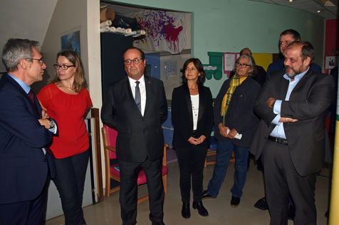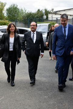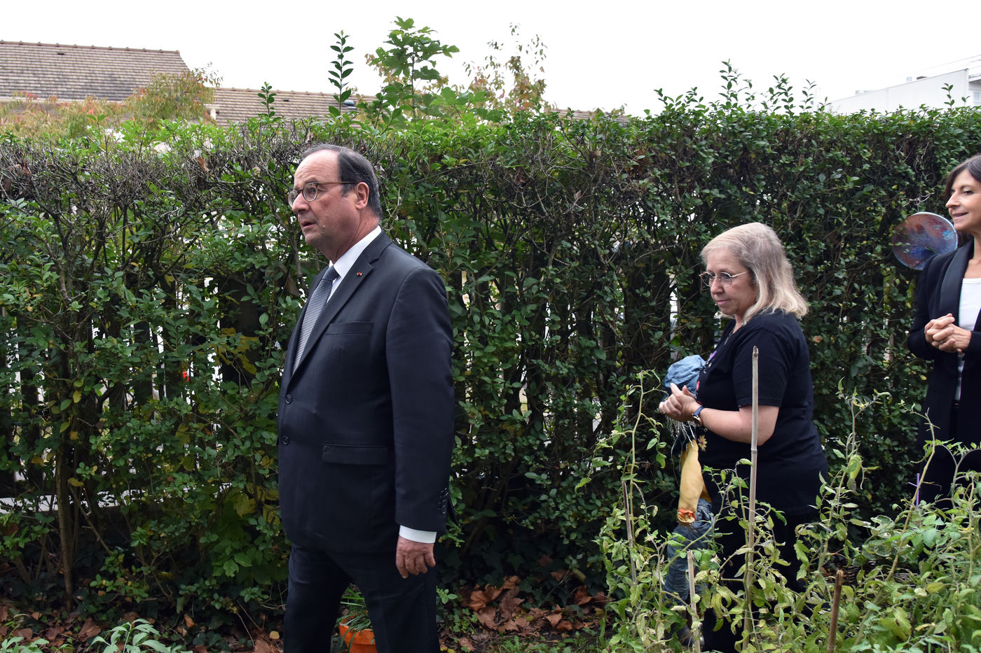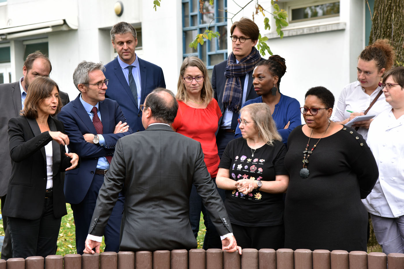 L'ancien président François Hollande visite une crèche écolo a Stains