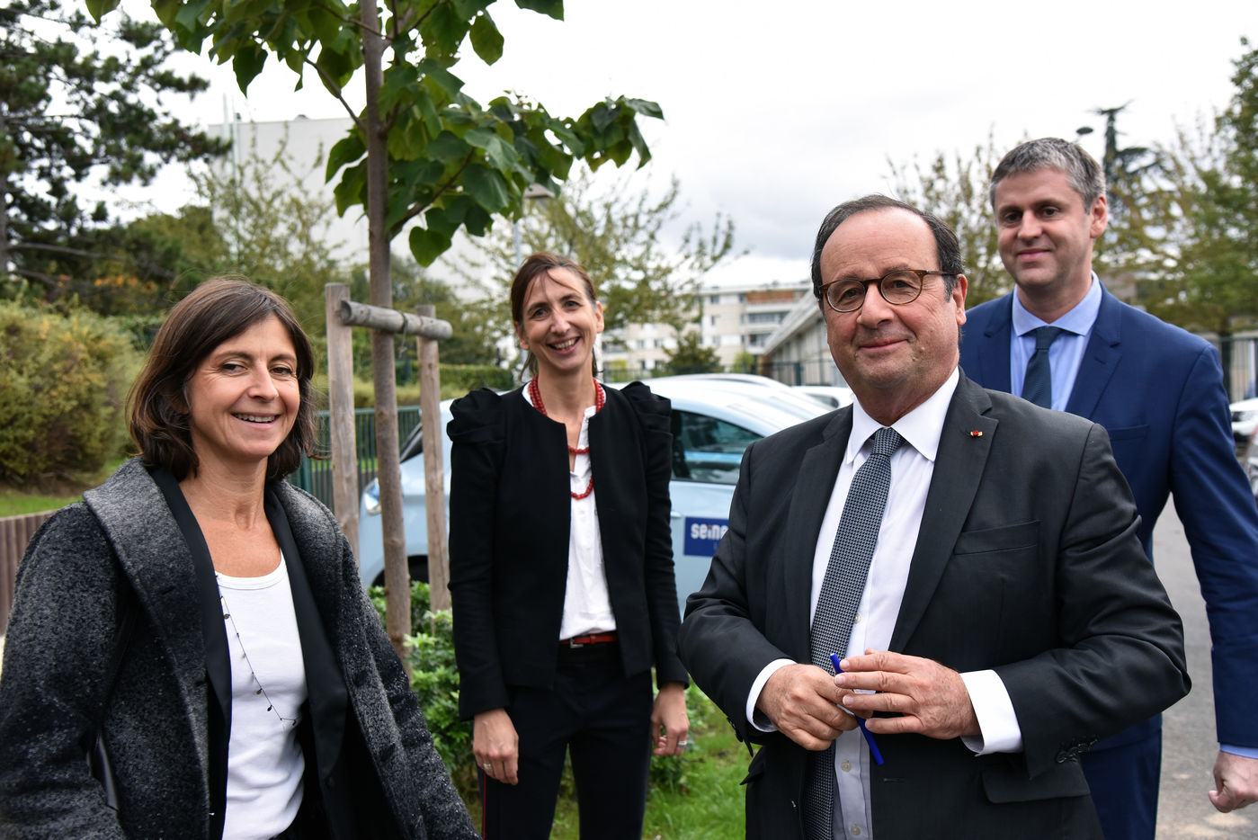Former president François Hollande visits an eco-friendly crèche in Stains