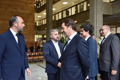 French prime minister Edouard Philippe arrives at the prefecture of Seine Saint Denis in Bobigny to meet local actors. The government announce a plan to transform the department.