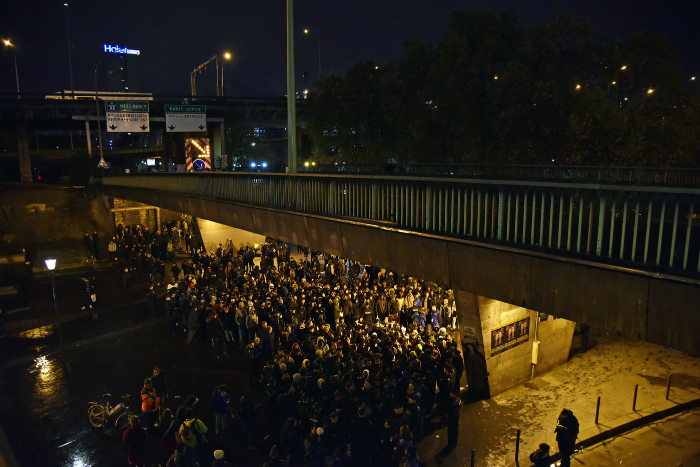et qui se deroulait dans le calme, sous la pluie, accompagnaient jeudi depuis 6h des exiles qui vivaient sous des tentes de fortune pres du peripherique parisien vers des bus pour les emmener dans des gymnases ou des centres d'accueil franciliens, dans une operation conjointe de la prefecture de police de Paris et la prefecture de la region Ile de France.