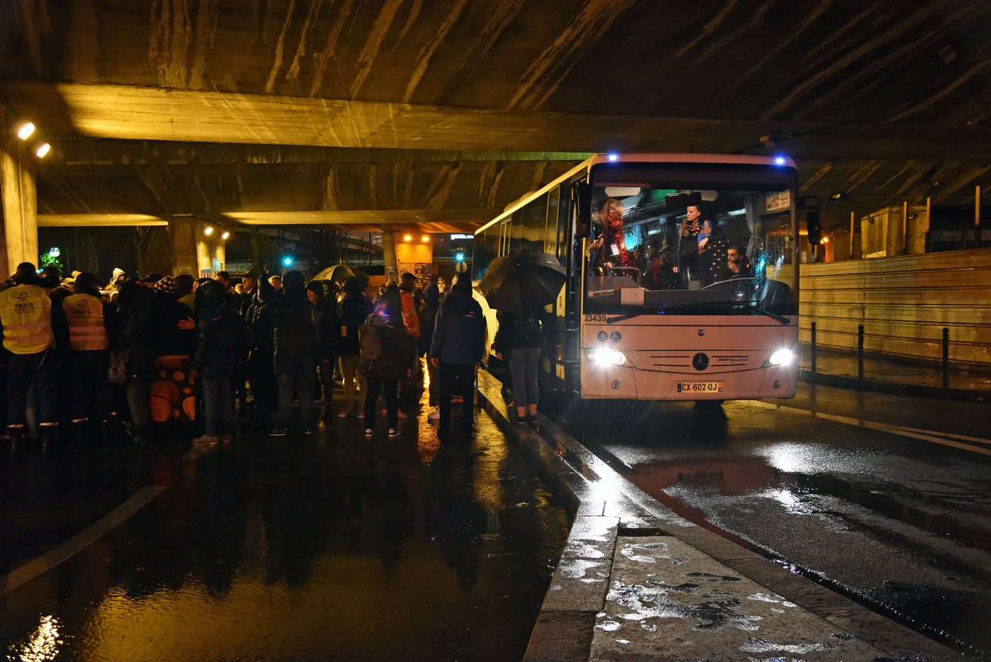 and which took place in the calm, under the rain, had been accompanying exiles who had been living in makeshift tents near the Parisian periphery to buses since Thursday at 6am to take them to gyms or reception centres in Paris, in a joint operation of the Paris police prefecture and the Ile-de-France.