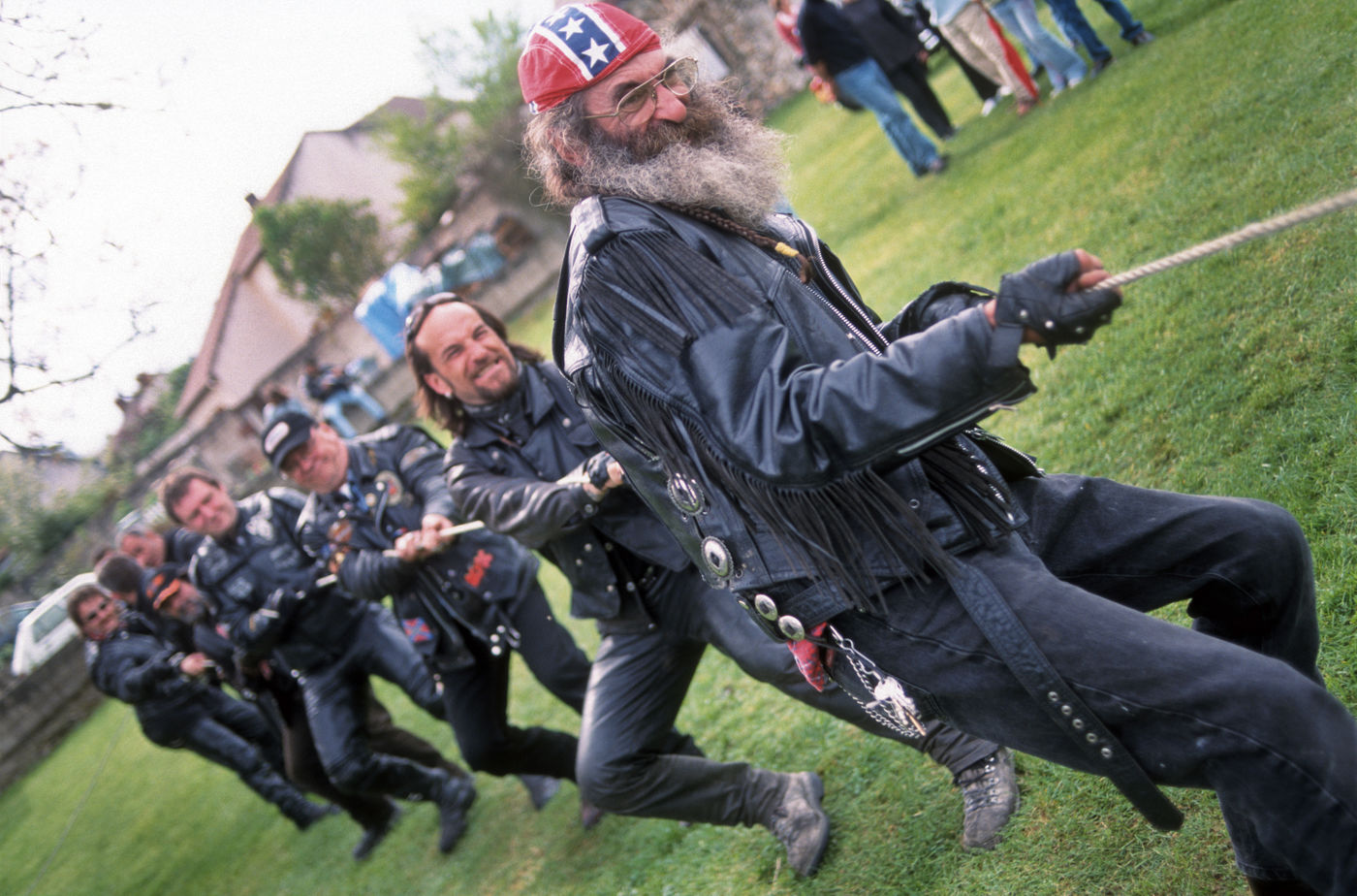 He cultivates the image of the rebel, wears trousers and motorbike boots, often wearing a black leather jacket with an eagle on the back, or a coat of arms in the colours of the club. They inspire neither fear nor terror, and belong to different social backgrounds, from a liberal profession: company manager, executive or shopkeeper... However, having a good income, the biker most often owns a 14/50 Fat Boy, the best-selling Harley-Davidson in the world.