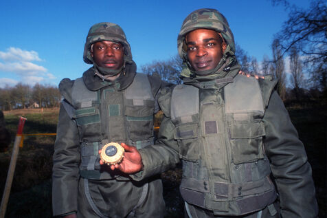 Prés de 3000 démineurs venus de 12 pays : Libanais, Cambodgiens et Aujourd'hui justement, 15 militaires américain venues tout exprès de leur base d'Allemagne, pour suivre cette formation, passent aux travaux pratique sur le terrain avec comme formateur le capitaine Didier CHEVAL.