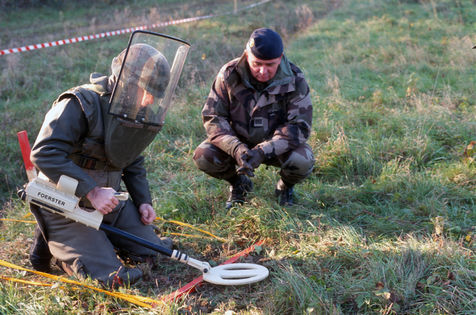 Elles sont alors radiographiées expertisées et étudiées sous-toutes les coutures. Le ESAG à Angers a ouvert un département "MINEX" qui est exclusivement indiqué pour l'instruction au déminage réservé aux démineurs militaires, étrangers ou civils agissant pour des organisations humanitaires ou oeuvrant dans des opérations de déminage.