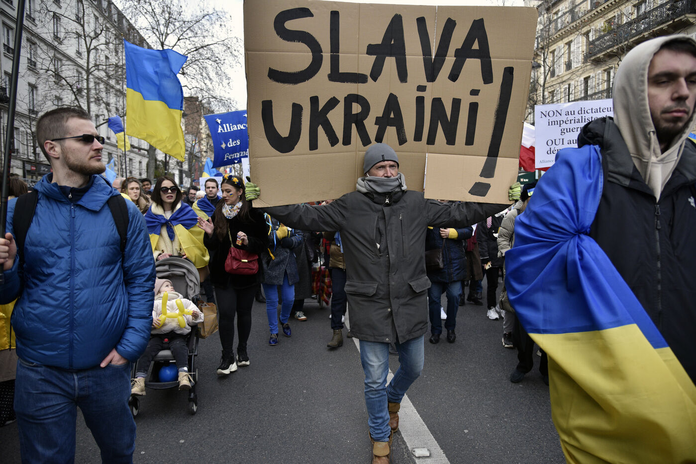 Manifestation de soutien à l'Ukraine, un an après l'invasion par l'armée russe