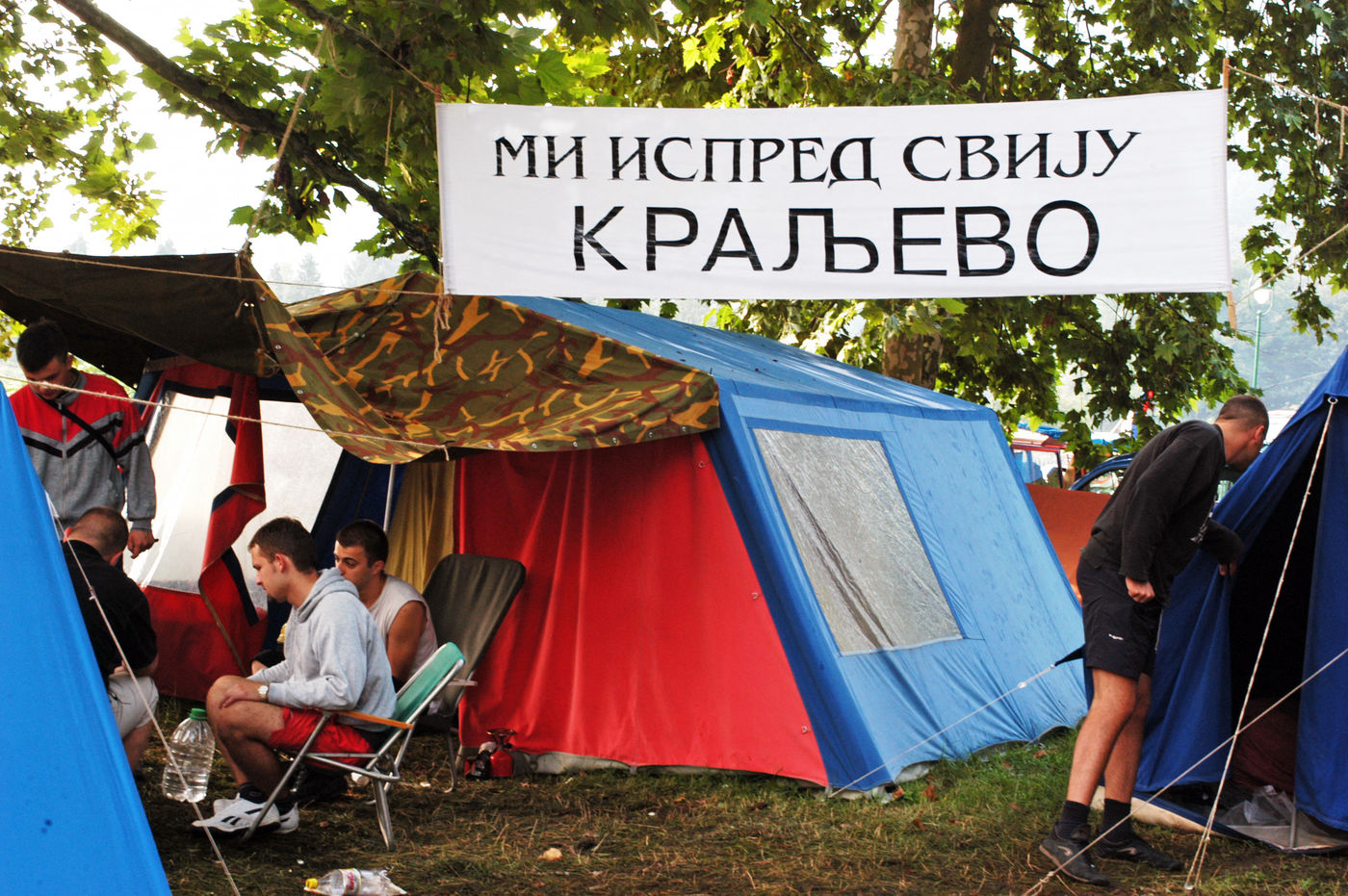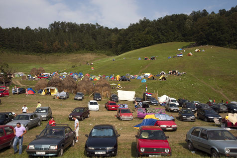 C'est ainsi que le village de Guca, situé à 175 km de Belgrade, 1500 habitants, accueille chaque mois d'août, le plus gros rassemblement de fanfares d'Europe. Durant quatre jours, près de 350 000 spectateurs viennent faire la fête et écouter une cinquantaine de fanfares. Dans les restaurants, sur les terrasses, ils seront parfois vingt ou trente musiciens à jouer à quelques tables d'intervalle, des trompettes vibrent comme un essaim de bourdons, puis lâchent toute leur puissance de cuivre. S'ils jouent plus fort que l'orchestre voisin, les musiciens gagneront plus d'argent. Quand le cuivre des instruments brille, c'est que la formation fait partie de la sélection finale et s'entraîne en public pour le dernier jour.