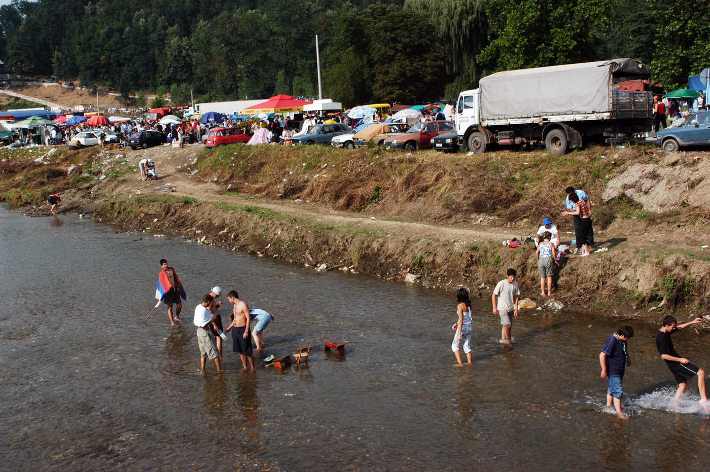 This is the only place in the entire Balkans where you can see so many Roma brass bands playing for so long. Day and night, the music pours out of the village and into the surrounding camps. On the café terraces and under the tents of the restaurants, from the spits where pigs and lambs are roasting, the brass instruments become solemn and moving before breaking out with virtuosity in a frenetic cocek (tchotchek), a traditional Roma dance.