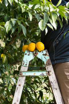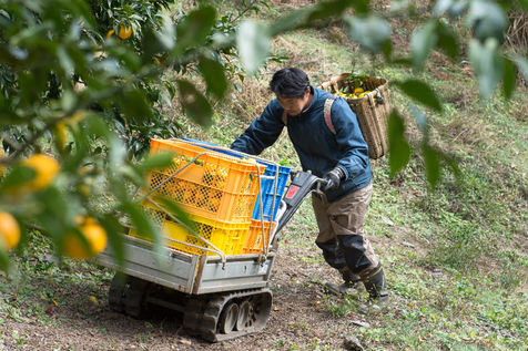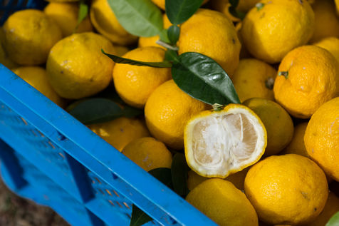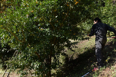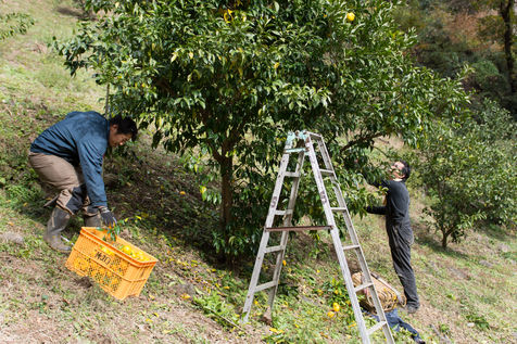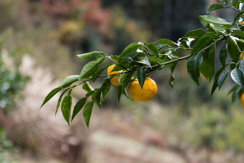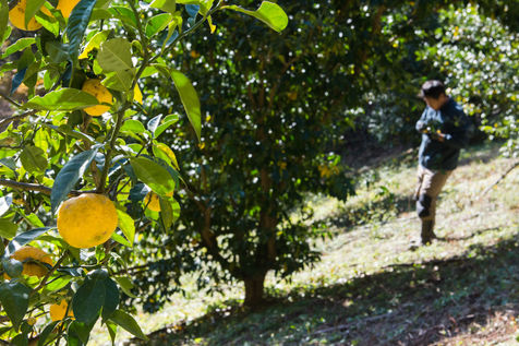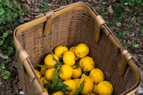 Perchée à flan de montagne, une parcelle de terrain est réservée à la plantation d'arbres fruitiers. Ici, le citron Yuzu y est cultivé biologiquement. De couleur jaune en hiver (fruit mûr) Agrume incontournable de la cuisine japonaise, le yuzu a un goût particulier entre le citron vert et le pamplemousse. Son acidité est forte et très appréciée des amateurs d'agrumes et des grands chefs.