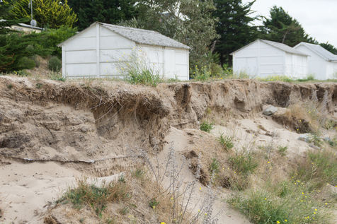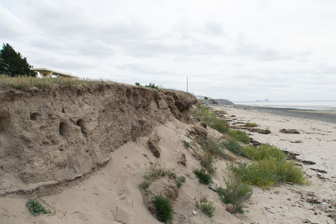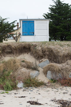 In the commune of Saint Jean le Thomas, located in the department of Manche (Normandy), the dunes have retreated in places by more than 7m, walls surrounding houses have been weakened or broken and the beach huts, flooded, after the onslaught of a storm in early 2018.