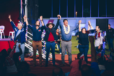 Activists from the six parties that make up the Loyalists (including L'Avenir en Confiance and the Rassemblement National) and supporters of the "no" vote for the independence of New Caledonia gathered for the final meeting of the official campaign, the last meeting before the October 4, 2020 consultation. The main thread of this evening: to bring together all the communities of the Caillou. Melanesians, Broussards, Wallisians and Futunians, Asians and Tahitians, marched along the stadium's track under blue-white-red flags.