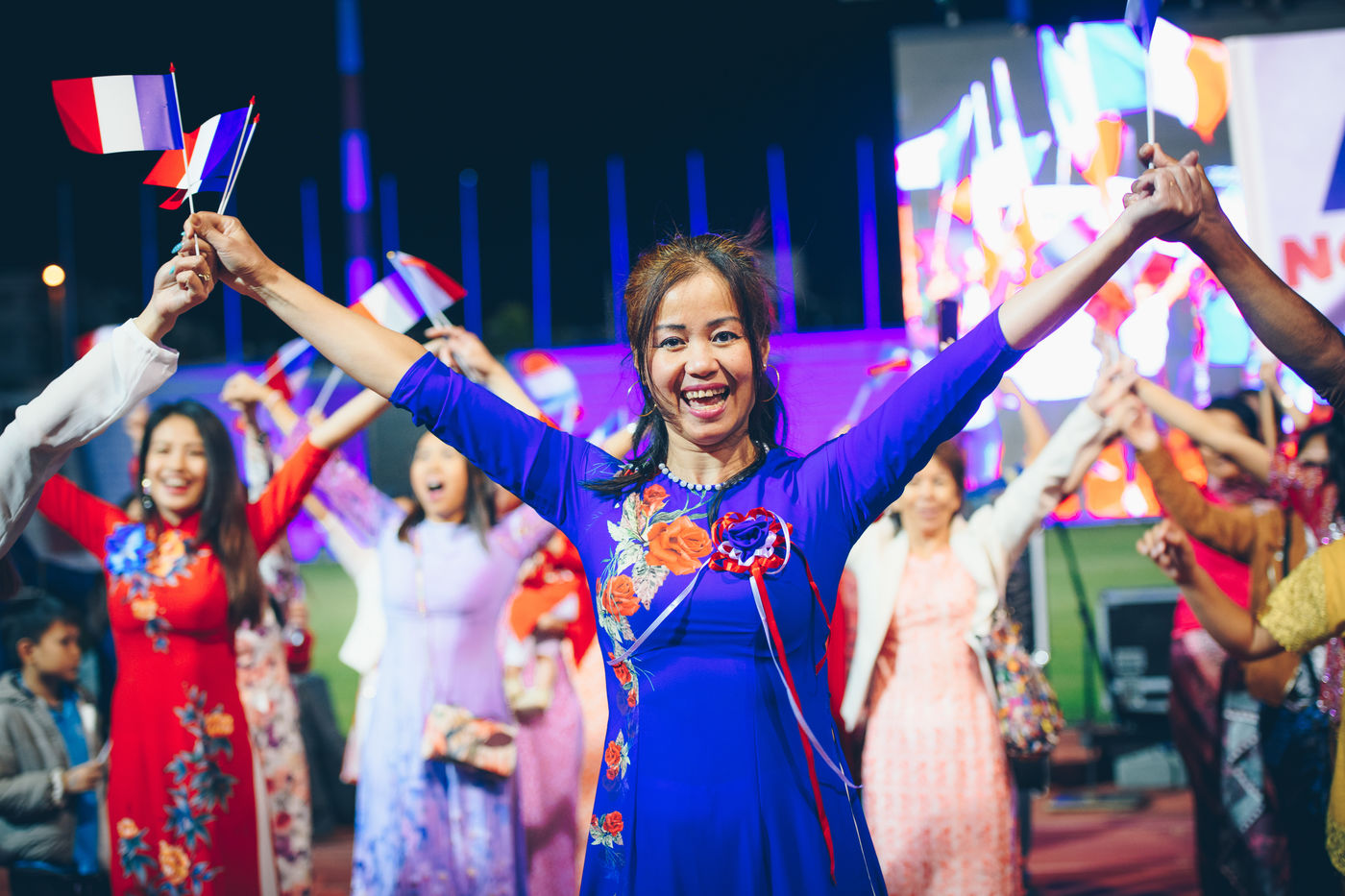Les militants des six partis qui composent les Loyalistes (dont l'Avenir en Confiance et le Rassemblement National) et les partisans du "non" pour l'indépendance de la Nouvelle-Caledonie se sont rassemblés pour le meeting final de la campagne officielle, ultime rendez-vous avant la consultation du 4 octobre 2020. Le fil conducteur de cette soirée : réunir toutes les communautés du Caillou. Les Mélanésiens, Broussards, Wallisiens et Futuniens, Asiatiques et Tahitiens, ont défilé le long de la piste du stade sous les drapeaux bleu-blanc-rouge.
