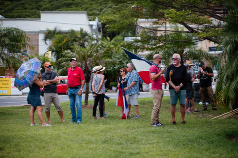 The "anti-blockades" mobilized on the traffic circles of Noumea by deploying French flags and banners to express their "fed up", following roadblocks by opponents to the sale of the southern factory to foreign investors, and in response to the "human chain" organized by the collective USUP (Usine du sud = country factory) on the same day, January 29, 2021.