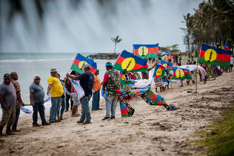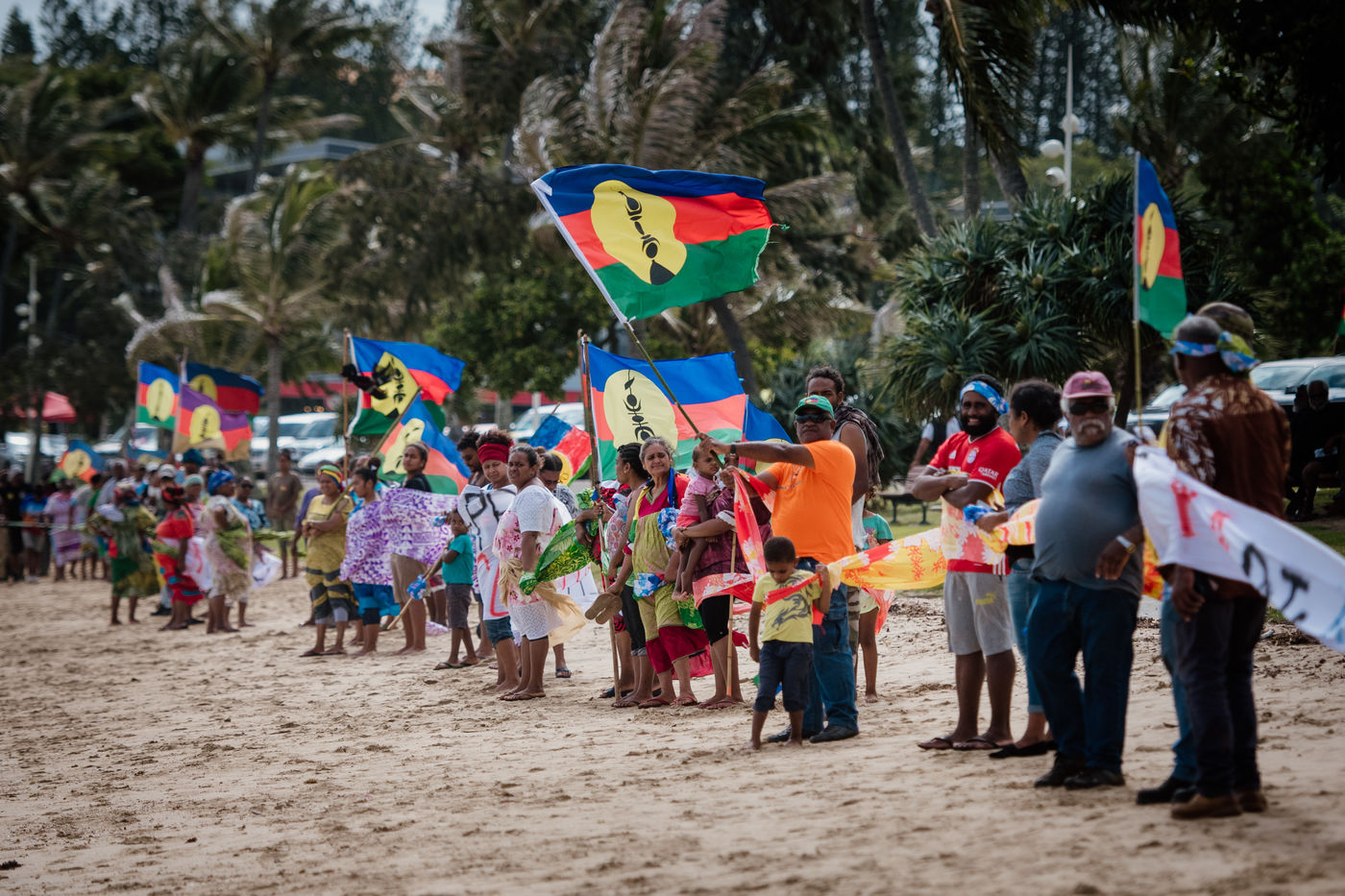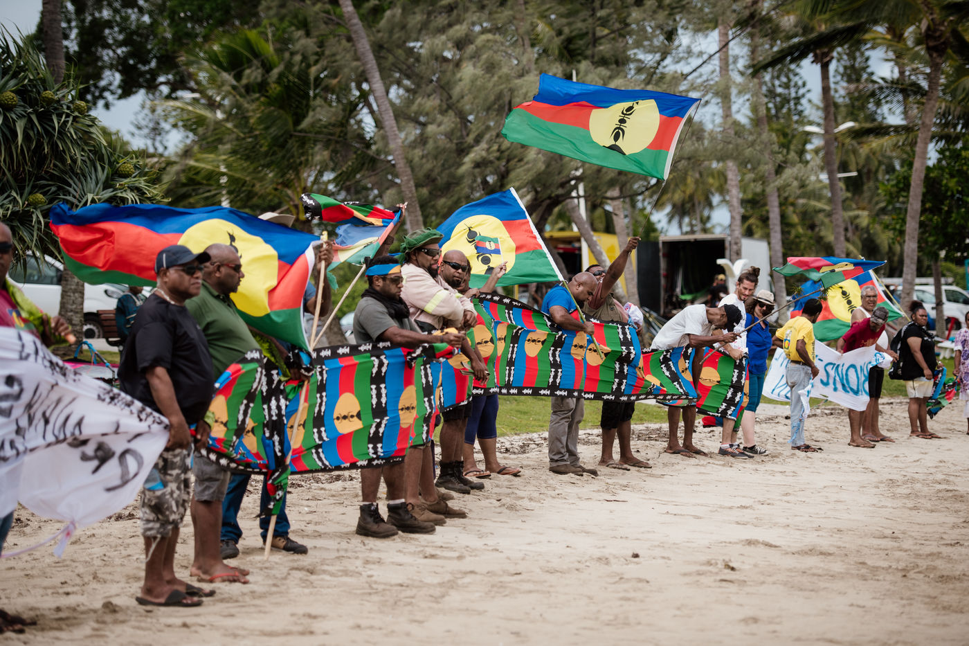 The USUP collective is mobilizing on the Anse Vata beach in Noumea