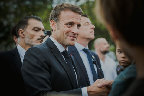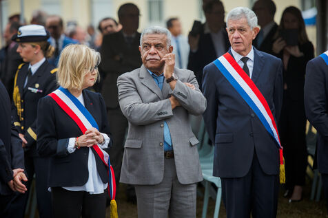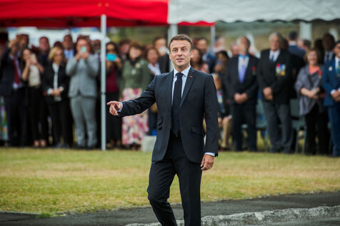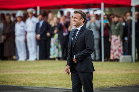 July 2023. The President of the French Republic, Emmanuel Macron, is on an official visit to New Caledonia. He takes part in the ceremony at Place Bir-Hakeim in Nouméa.