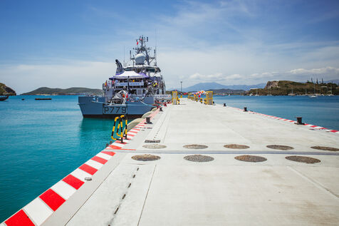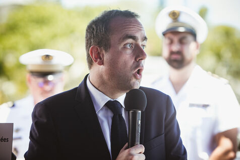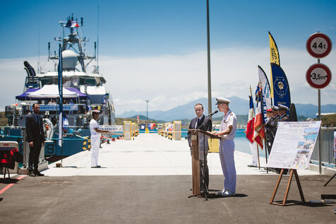 Armies Minister Sébastien Lecornu inaugurates the new overseas patrol boat dock at the Pointe Chaleix naval base in Nouméa.