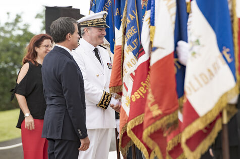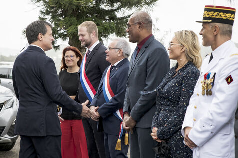 Nouvelle-Calédonie - Dépôt de gerbe par le nouveau Haut-Commissaire de la République Jacques Billant durant la visite officielle de Manuel Valls