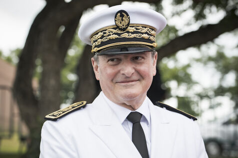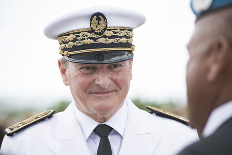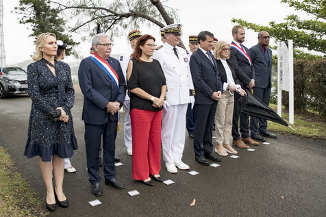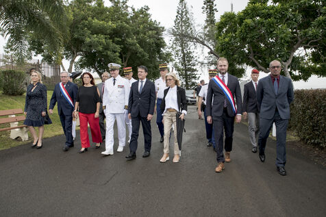 French High Commissioner Jacques Billant, in office for two days in New Caledonia, lays a wreath at the Croix de Lorraine in Noumea, in the presence of French Overseas Minister Manuel Valls, on an official visit to the territory. Caledonian elected representatives were also present.