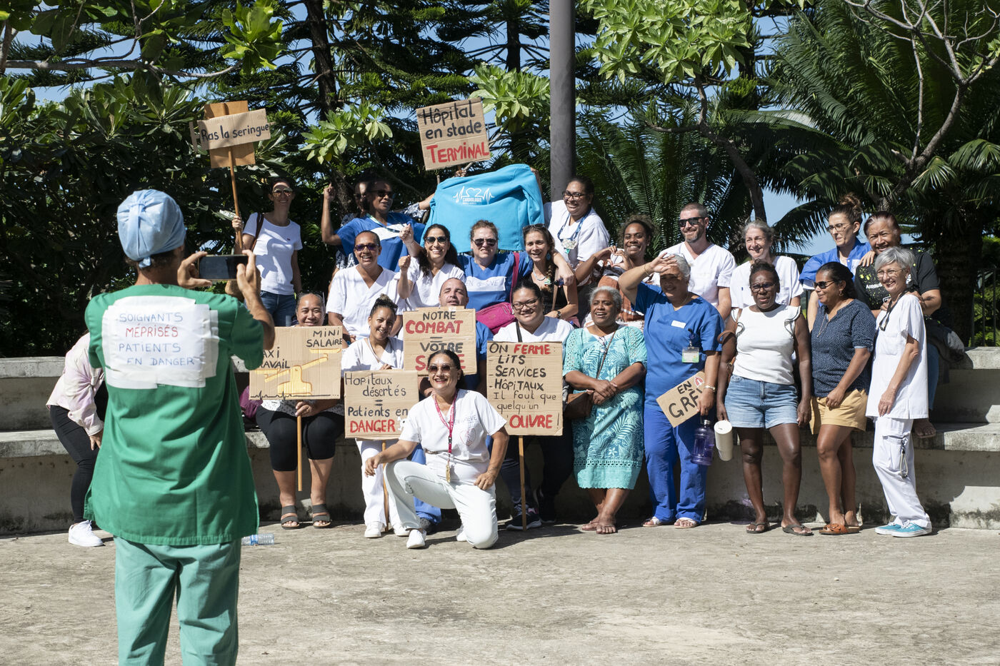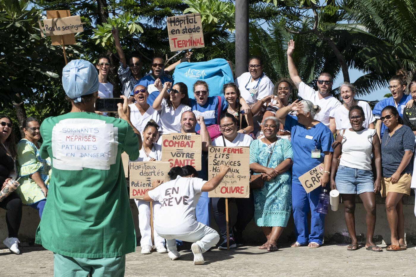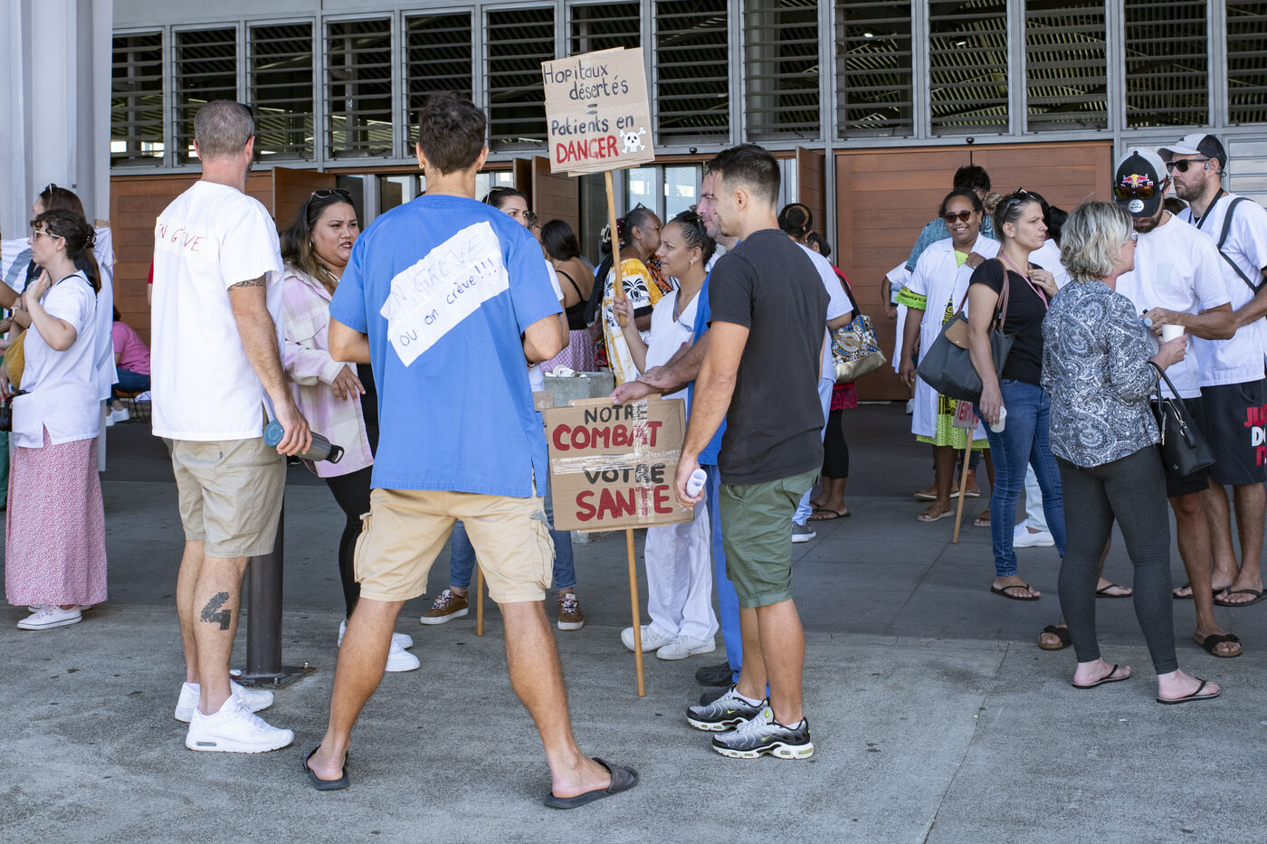 Caregivers at Médipôle Centre Hospitalier Territorial Gaston-Bourret are responding to a call from the UT CFEF-CGC by demonstrating on the hospital's forecourt, to denounce the deterioration in their working conditions: lack of resources, team exhaustion due to lack of manpower, absence of hardship bonuses, pay and recruitment inequalities, and violence against them. This unlimited strike concerns all healthcare professionals throughout New Caledonia.