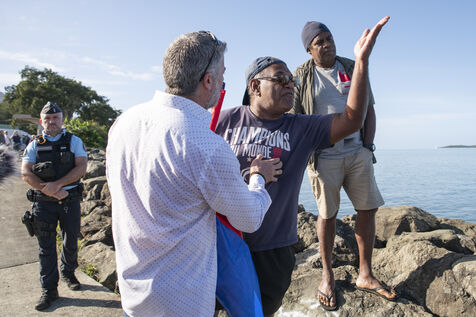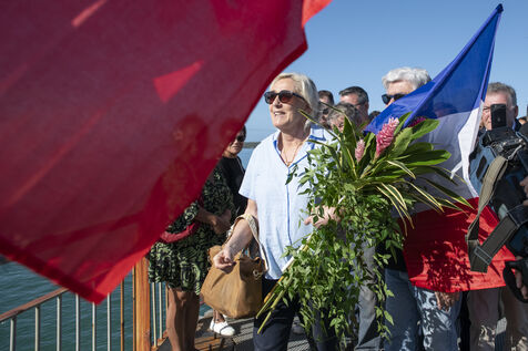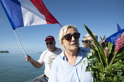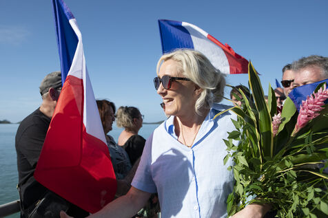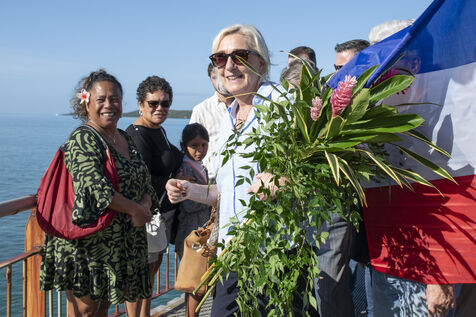 Visiting New Caledonia for three days, the leader of the Rassemblement National party, Marine Le Pen, met the inhabitants of Le Mont-Dore, accompanied by the first vice-president of the Rassemblement National, Louis Aliot, the two European deputies, Andre Rougé and Christophe Bay, and the departmental delegate of the Rassemblement National in New Caledonia, Alain Descombels. Welcomed on arrival by boat from Nouméa by the Association Citoyen Montdorien (ACM), the delegation then held lengthy discussions with local residents and members of the association in a particularly tense and animated atmosphere.
