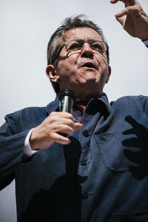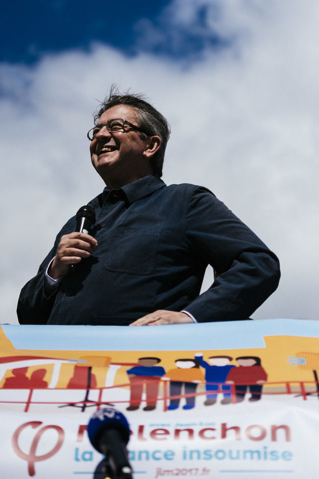 Jean-Luc Mélenchon en campagne à bord de la "Péniche insoumise".