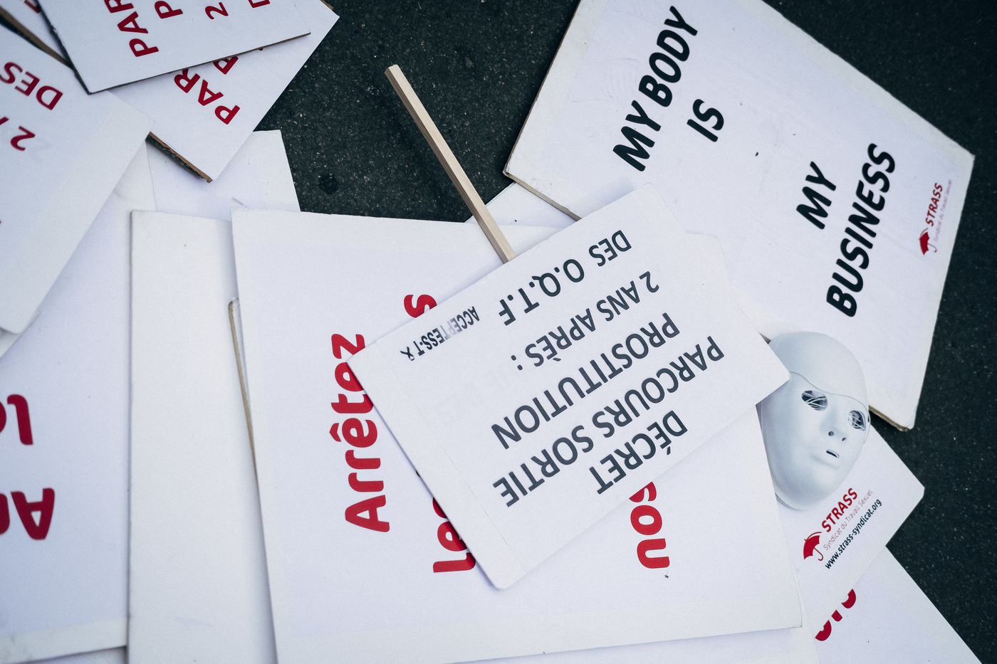 Manifestation à Pigalle pour l'abrogation de la loi de pénalisation des clients, pour réclamer le régularisation de tou,tes,s les migrant,e,s TravailleurSEs du sexe, pour l'abrogation des arrêtés municipaux. Organisé par le Strass - syndicat du travail sexuel.