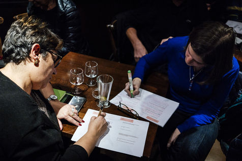 1ère réunion parisienne du grand débat national qui a réuni 45 citoyens au café Le Molière dans le quartier Saint-Germain des Prés, sur le sujet "Vote blanc et démocratie illisible" dans la thématique "La démocratie et la citoyenneté". Paris, 21 janvier 2019.
