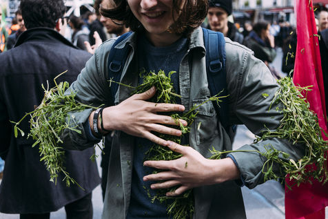 Die-in is a form of non-violent resistance. Participants lay on the ground in public "as if they had died", to symbolize the disappearance of plant and animal species, including humans. Paris, France, April 27, 2019.