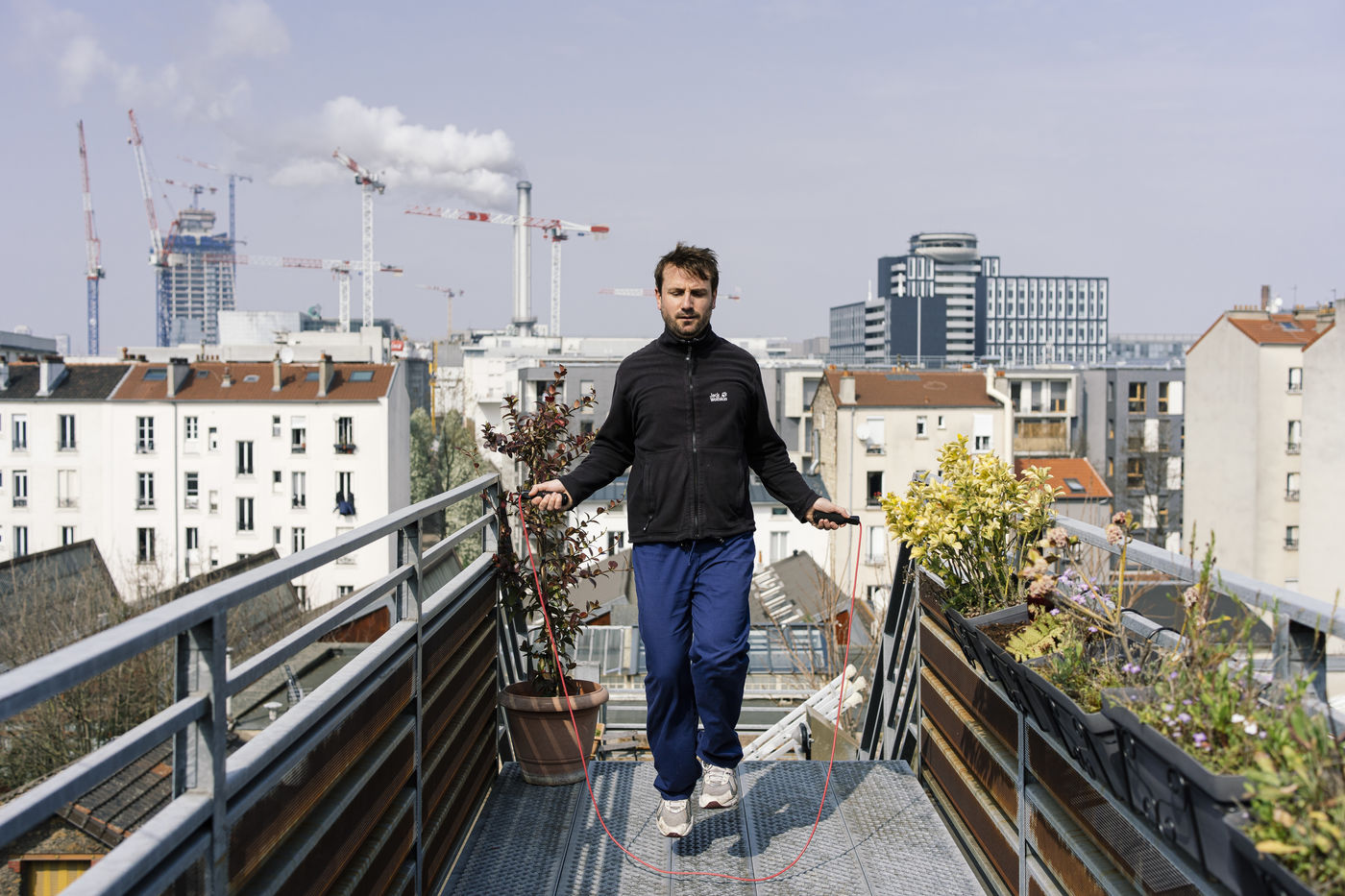 Scènes de vie confinée au sein d'une résidence en région parisienne. Pour lutter contre la propagation de l'épidemie de Coronavirus, le gouvernement a demandé aux Français de rester confinés chez eux. Cette restriction de sortie a débuté le mardi 17 mars 2020 à midi.