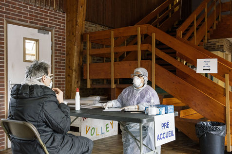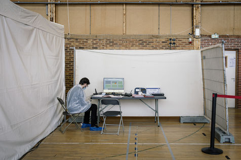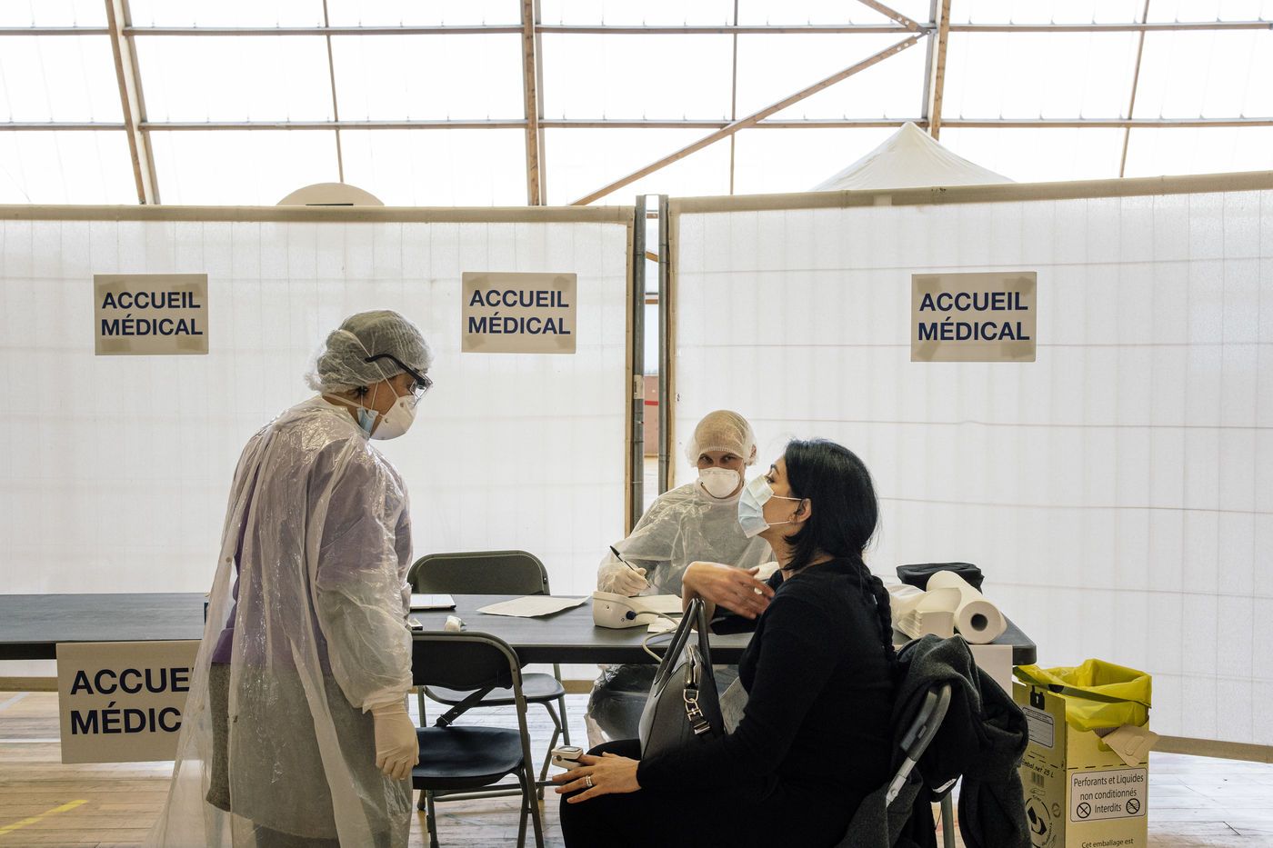 The Tabanelli gymnasium in Champigny-sur-Marne hosts a medical consultation centre for patients with symptoms of the Covid-19 coronavirus. Champigny-sur-Marne, France, March 31, 2020.
