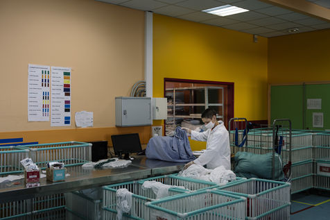A l'ESAT de la Fondation des Amis de l'Atelier au Plessis-Robinson, il s'agit de blanchir les draps des foyers et EHPAD, produire des kits de fabrication de masques et blouses distribués à un réseau de bénévoles. Une fois produits, ils seront lavés a 60° et conditionnés sous film puis distribués au personnel et aux résidents des établissements.
