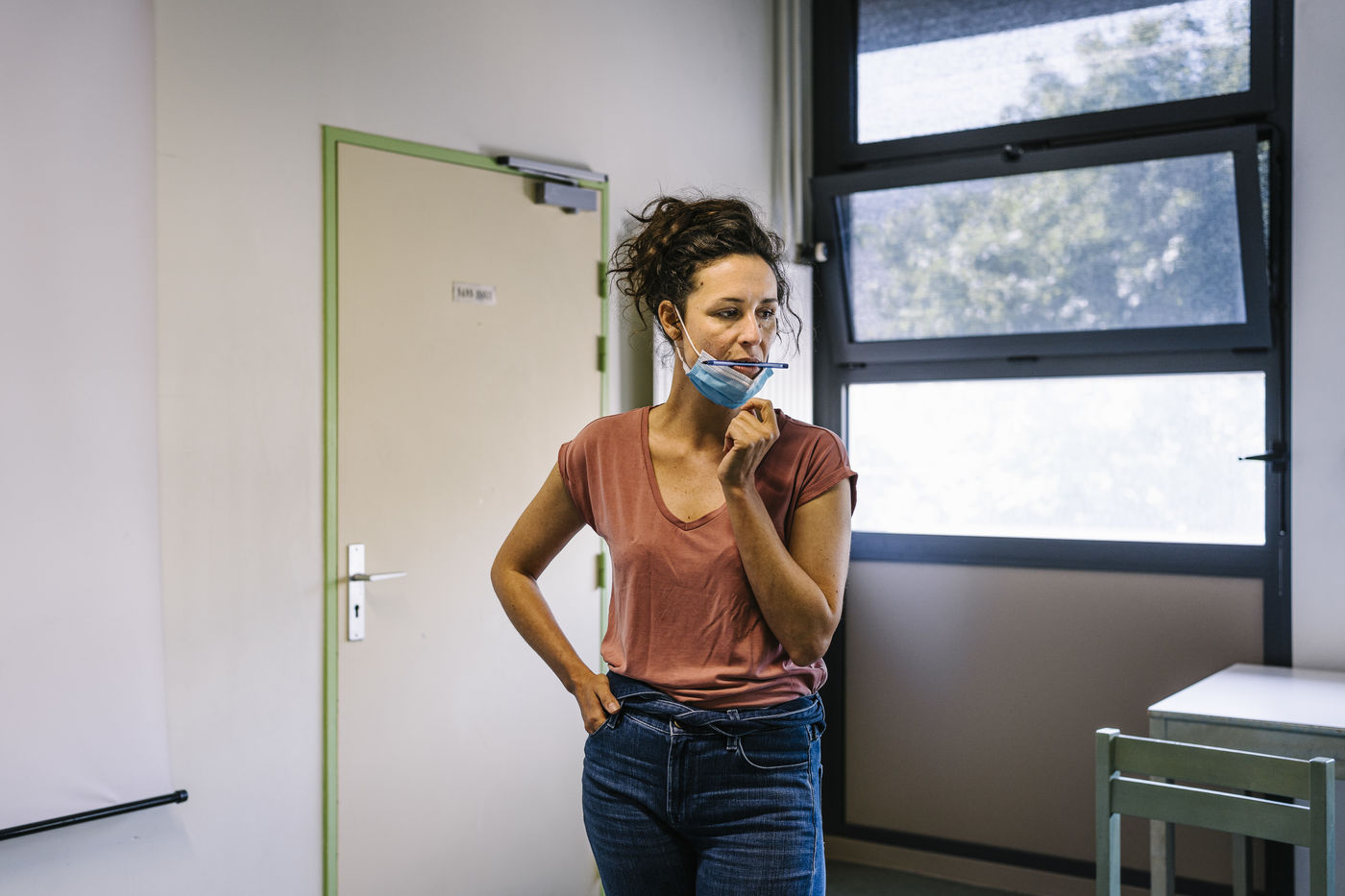 Performance of the play "Le Massacre du printemps" (The Spring Massacre) by the company Tout un ciel, directed by Elsa Granat, in front of a class of 9th graders at the Joliot-Curie school in Pantin. This meeting is organised by the Théâtre Paris-Villette.
