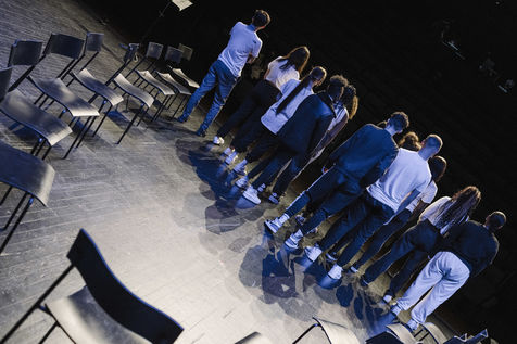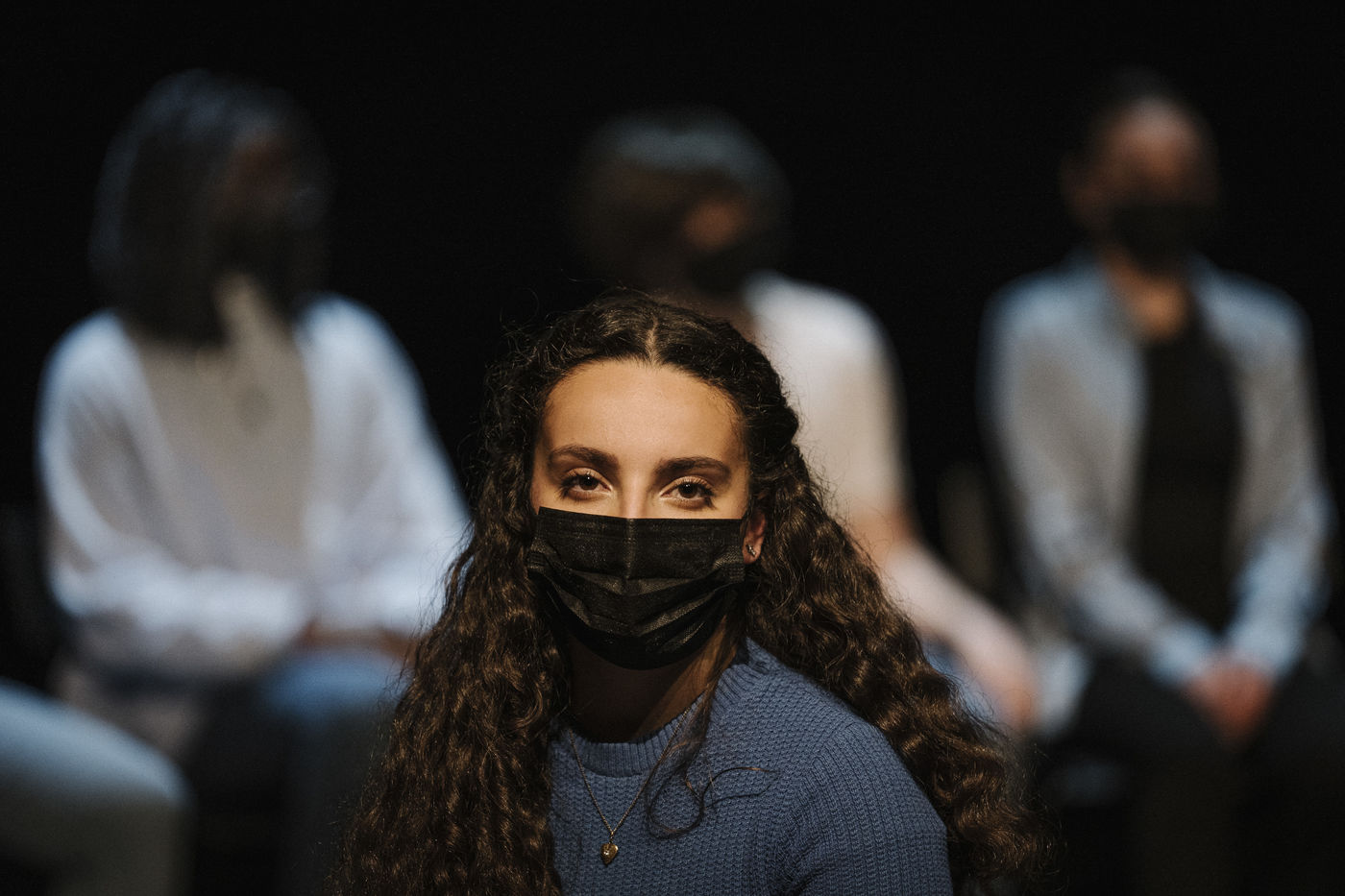 France, Théâtre de Saint-Quentin-en-Yvelines, scène nationale, 2021-05-26. Theatrical performance "Just the end", creation directed by Aurélie Ruby as part of an artistic education project developed throughout the Yvelines region, with the participation of high school students from various schools in the department. Photograph by Denis Meyer / Hans Lucas.