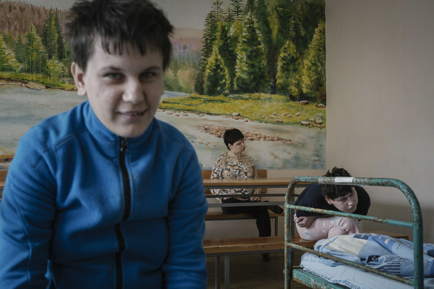 En Ukraine, depuis l'invasion russe, la guerre touche aussi les personnes handicapées placées en institution. Plusieurs ont dû être évacuées comme celles de Jytomyr et Kryvyi-Rih. Une quarantaine de jeunes gravement handicapés ont trouvé refuge dans l'orphelinat de Vilshany, localisé en Transcarpathie, une région jusque-là épargnée par le conflit. L'un des groupes est accompagné par deux membres du personnel de l'orphelinat volontaires, l'intendante et l'assistante sociale. Elles doivent dorénavant s'improviser aides soignantes. L'orphelinat de Vilshany, qui accueille en temps normal 170 enfants et jeune adultes gravement handicapés (catégorie IV) est soutenu depuis près de 30 ans par l'ONG Comité d'Aide Médicale. Longtemps orphelinat mouroir, il est aujourd'hui une institution modèle dans le pays. Le développement des personnes est favorisé notamment par la participation à de nombreux ateliers : enseignement, musique, création artistique, menuiserie...