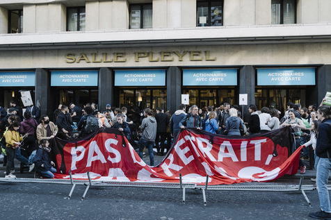 250 activistes du mouvement climat se sont mobilisé·es pour bloquer l'Assemblée Générale annuelle de Total, afin d?exiger de Patrick Pouyanné des engagements concrets et immédiats sur un retrait des activités de Total en Russie et cesser tout projet d'énergies fossiles.
