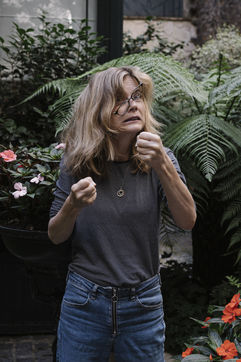 L'actrice et écrivaine Isabelle Carré dans la cour de l'Hôtel de l'Abbaye, à Paris.