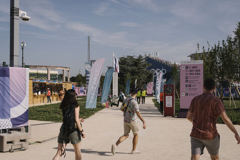 France, Le Bourget, 2024-08-06. Sport climbing event at the Le Bourget climbing site, supporters and infrastructure of the Olympic district, as part of the Paris 2024 Olympic Games.
