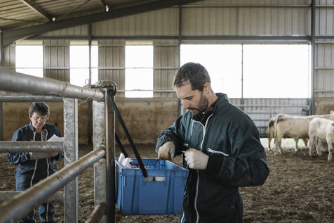 To deal with the triple epidemic in cattle (blue tongue 2 versions and haemorrhagic fever), veterinarian Guillaume Thomas-Guingand from the Cressanges veterinary practice is working with sheep and cattle farmers in his area, whose herds are affected by the FCO serotype 8 epidemic. He takes blood samples and injects vaccines.
