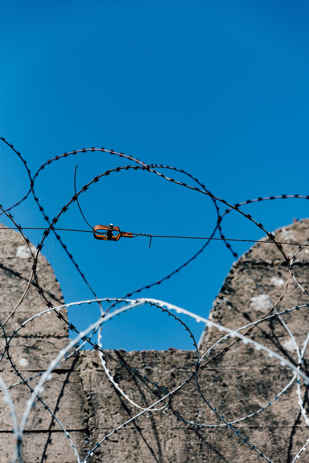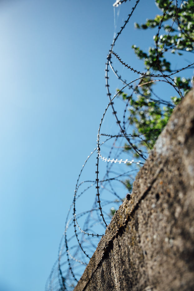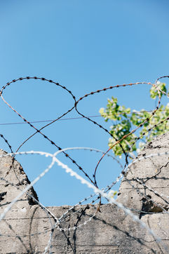 A defensive fortress of the German army sheltering its submarines, the Saint-Nazaire submarine base is now a place of cultural and tourist activities. Here details show traces of the war, barbed wire, wall cracks.