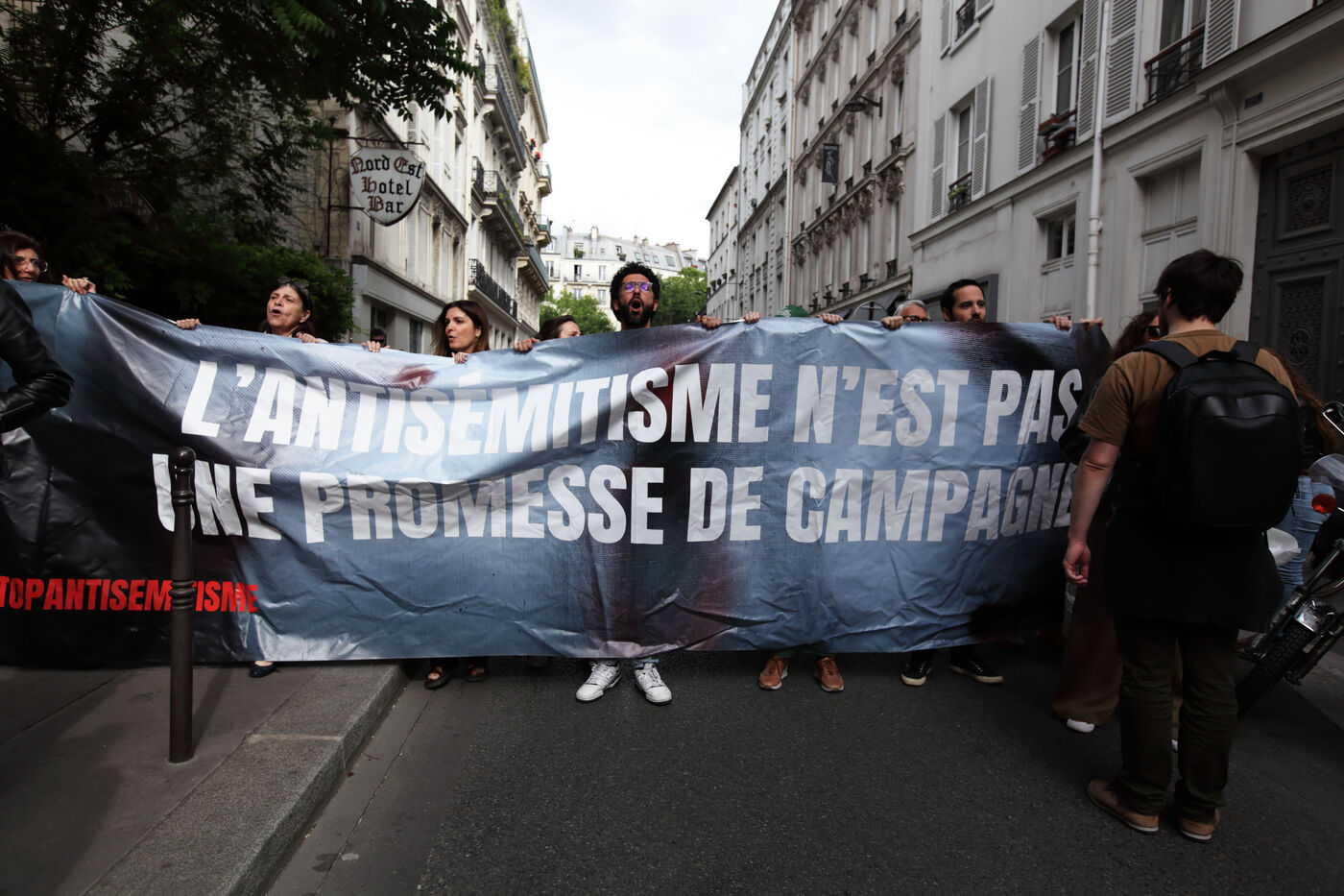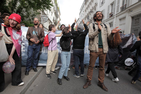 While negotiators from the various left-wing parties, Parti Socialiste, Europe Ecologie Les Verts, LFI, Parti Communiste, Place Publique are gathered at the EELV headquarters, rue des petits hôtel in Paris, activists are gathered in the street in front of the seat. Activists from the Jewish collective Nous Vivrons arrive and denounce the alliance with LFI, which they accuse of anti-Semitism. A heated verbal altercation between activists requires the intervention of the Police to separate the activists.